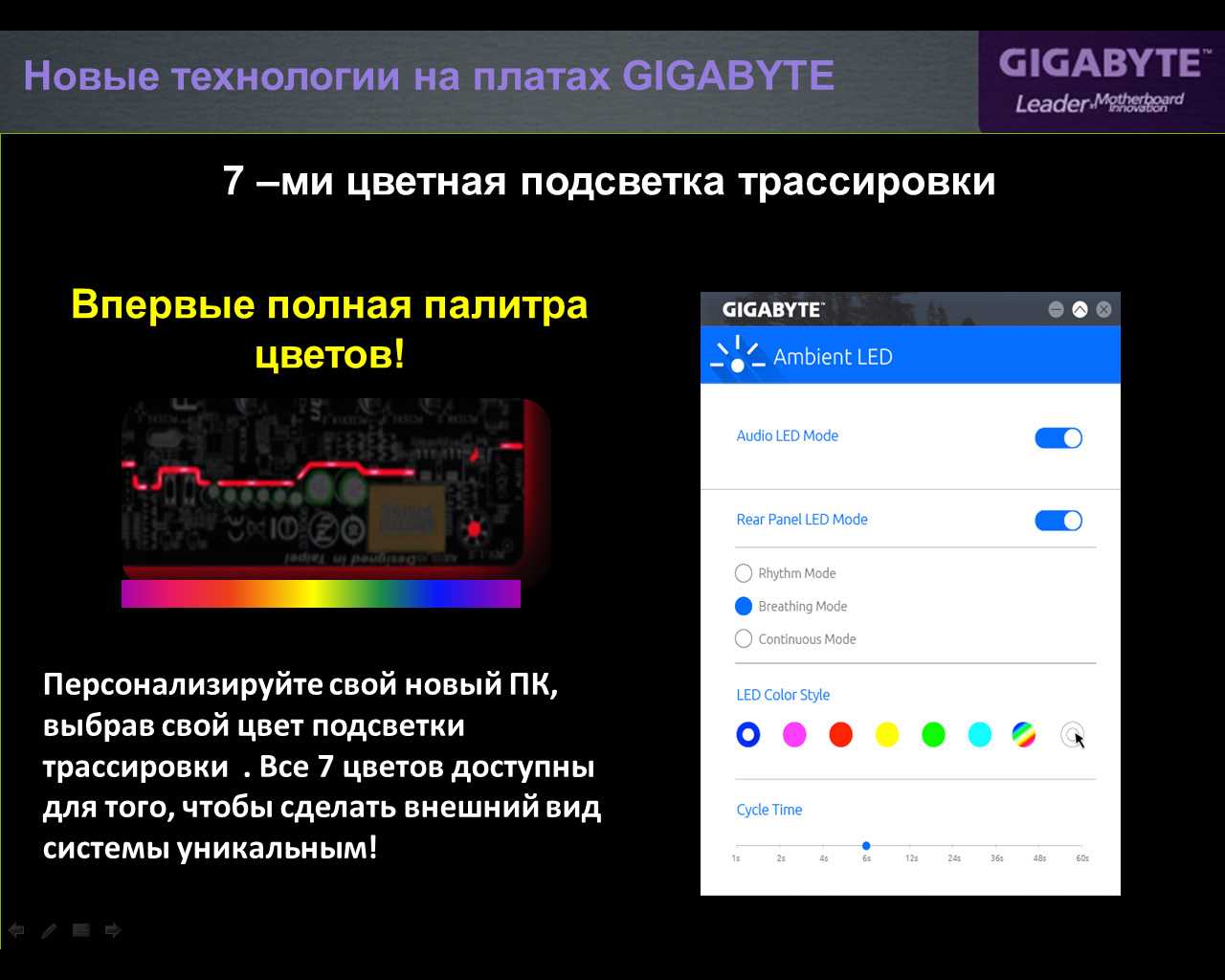 Конечно, не обошлось без подсветки, которая активно использовалась еще с платами предыдущей серии, теперь же усовершенствованный вариант позволяет выбирать цвета иллюминации.