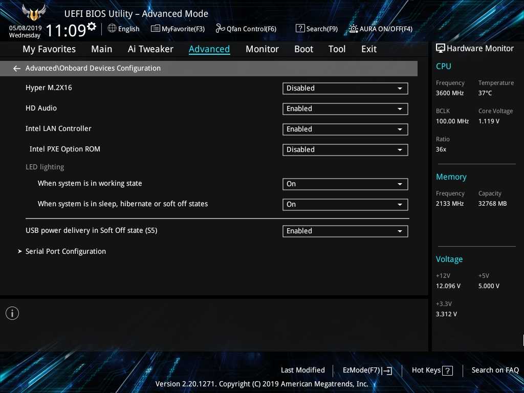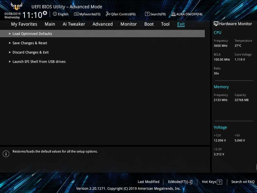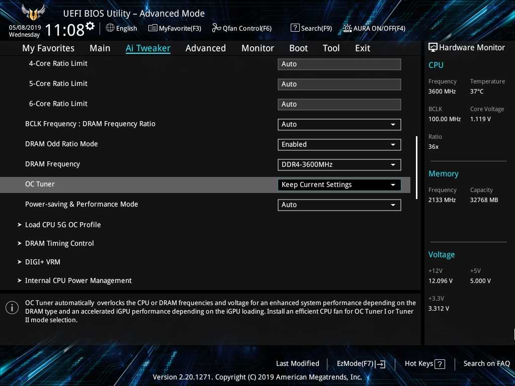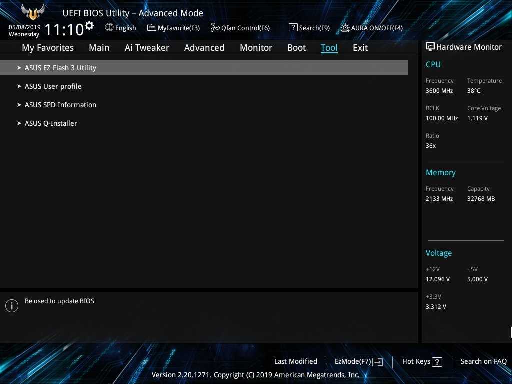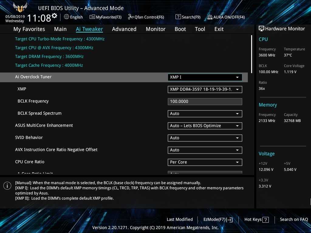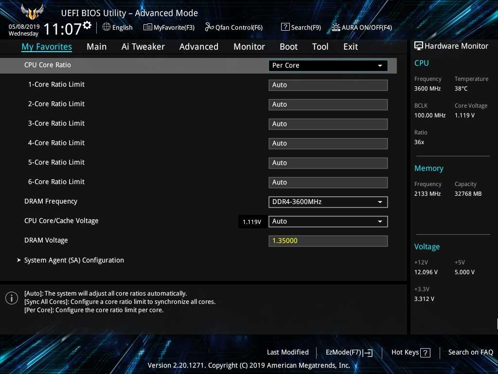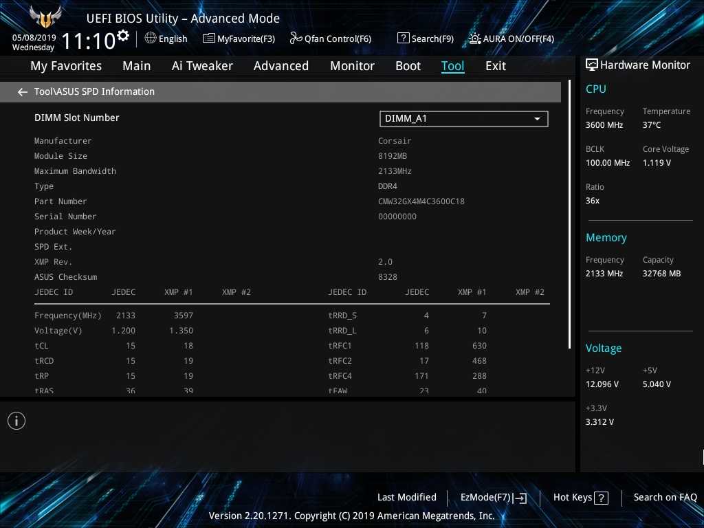 Материнская плата Prime Z490-A тестировалась на актуальной версии BIOS 0707. Основу тестовой конфигурации составили процессор Intel Core i7-10700k и пара модулей памяти G.Skill Trident Z RGB DDR4-4266.