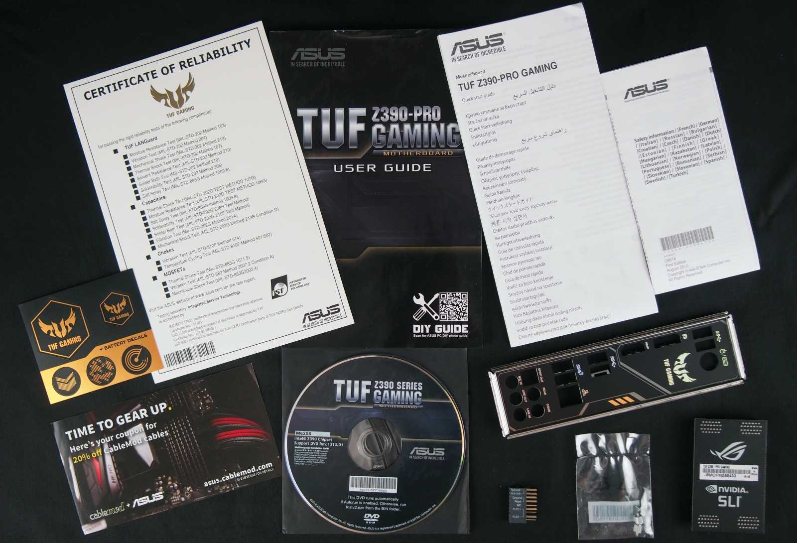 Комплект поставки TUF Z390-Pro Gaming включает в себя: