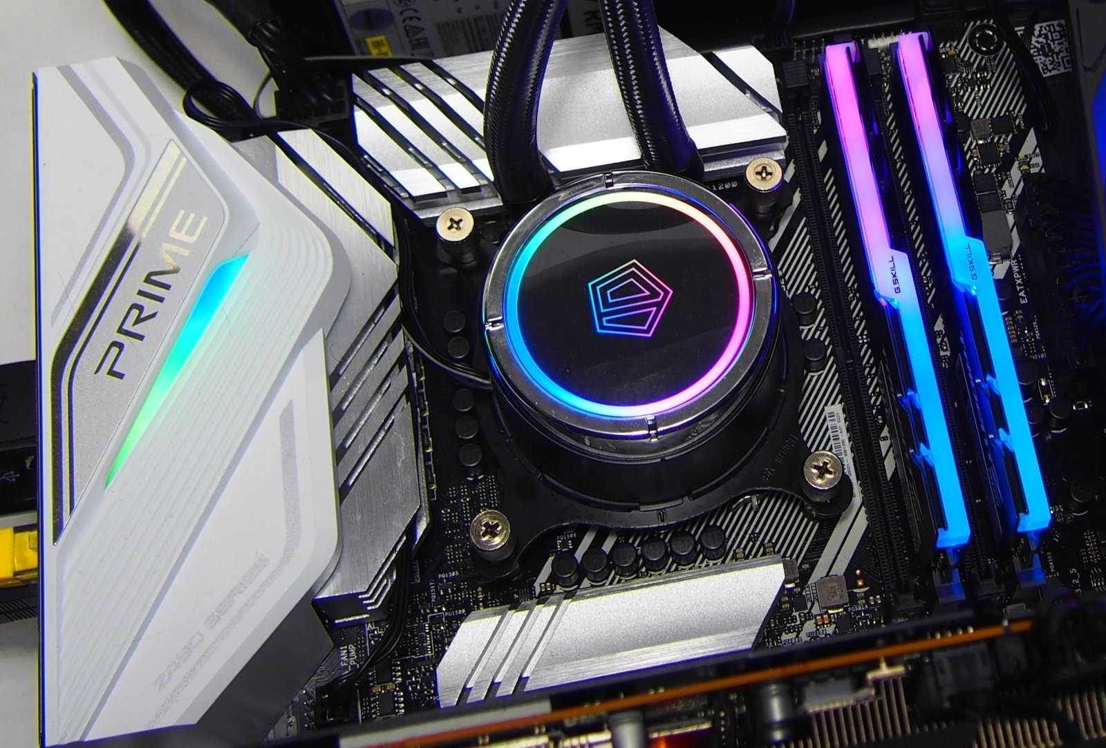 Для охлаждения центрального процессора использовалась система жидкостного охлаждения с 240-мм радиатором.