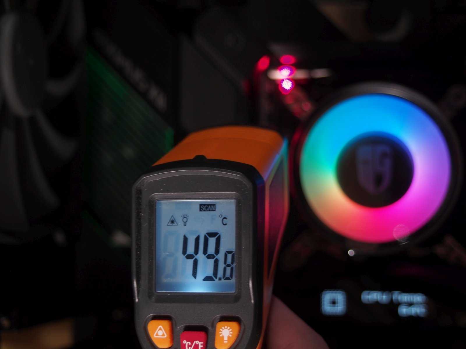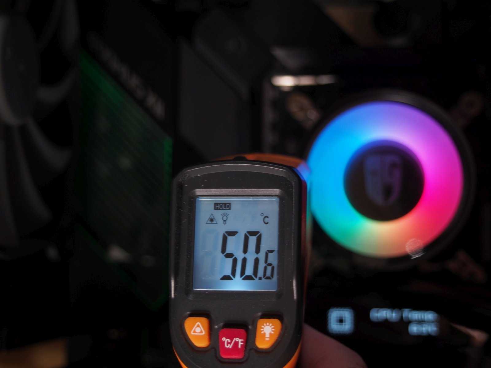 Что касается системы питания материнской платы Maximus XII Formula, а именно температур ее радиатора-водоблока EKWB во время нагрузки, то они оставались на комфортном уровне. Радиатор для верхней зоны VRM нагревался до 49.8 градусов Цельсия, а радиатор для зоны VRM слева от процессора — до 50.6 градусов Цельсия. Таким образом, можно совершенно точно сказать, что эксплуатация Maximus XII Formula в паре с Core i7-10700k возможна и без включения ее радиатора-водоблока EKWB в контур жидкостного охлаждения.