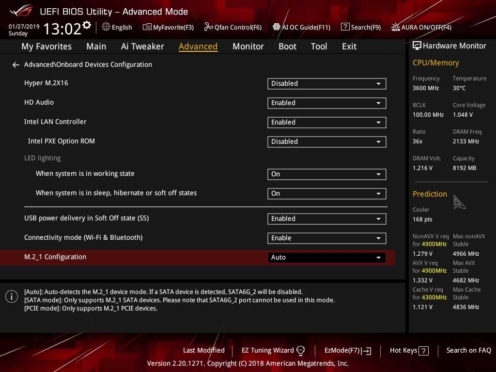 Настройка периферийных устройств, накопителей и разъемов платы доступна во вкладке «Advanced».