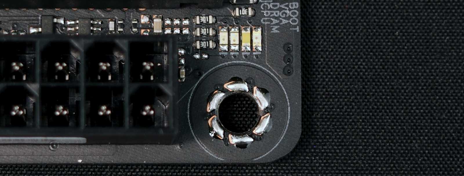 Небольшой ряд диагностических светодиодов BOOT/VGA/DRAM/CPU распаян в правом верхнем углу ROG Strix Z390-I Gaming.