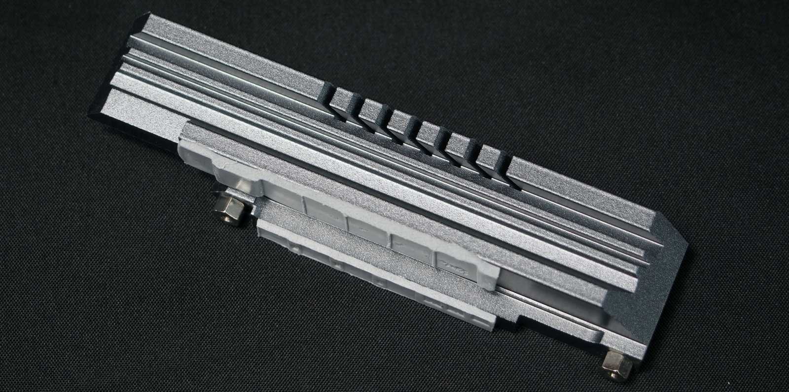 Для передачи тепла от тела накопителя на радиатор используется термопрокладка.