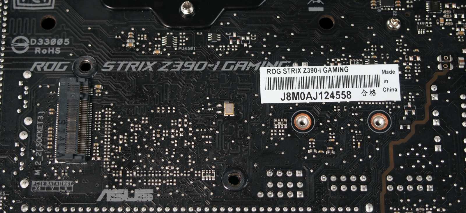 Спереди места хватило лишь для одного разъема М.2, поэтому второй такой же разъем М.2 перекочевал на тыльную сторону ROG Strix Z390-I Gaming.