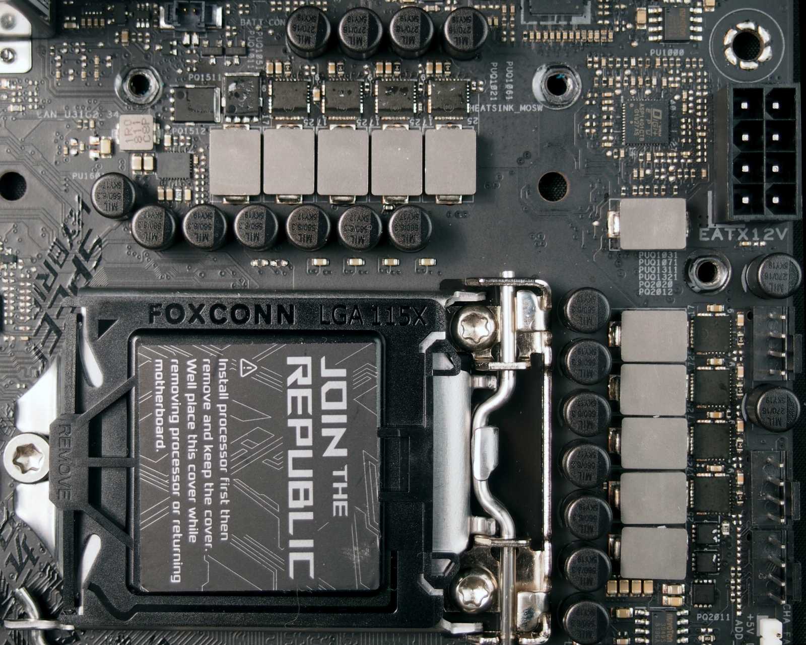 В рамках форм-фактора Mini-ITX система питания процессора здесь несколько упрощена, но даже 10 фаз в обвязке питания все равно достаточно для 8-ядерных процессов Intel.