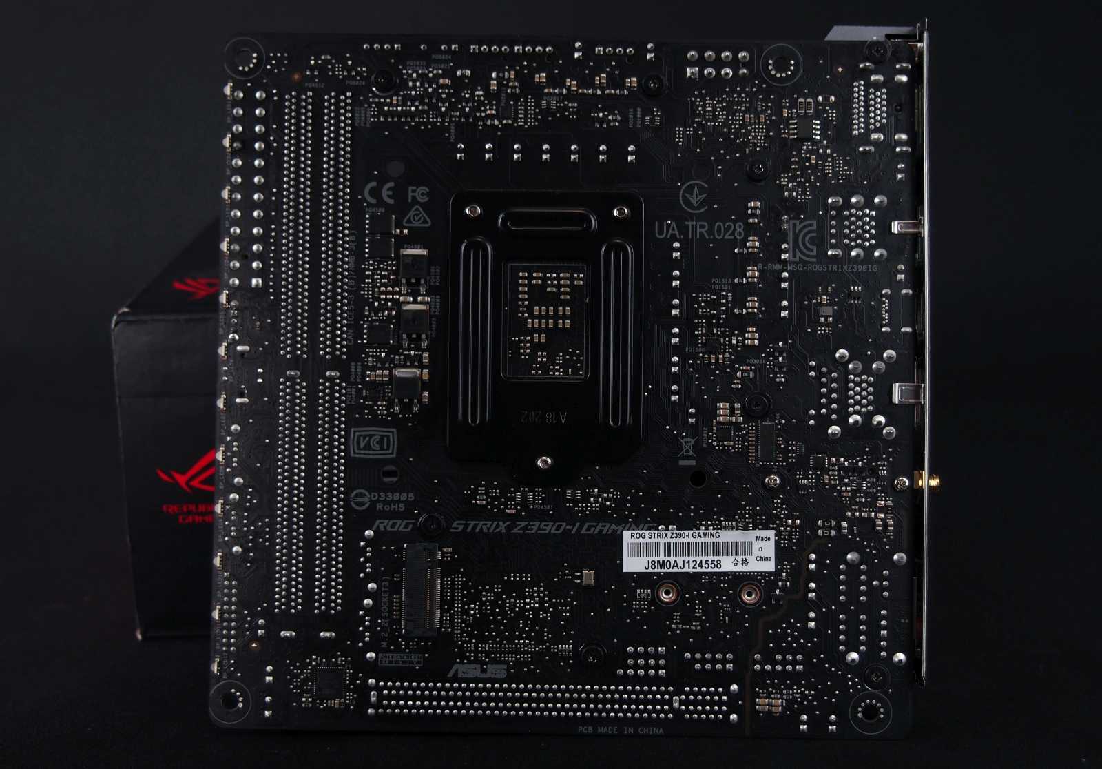Особенностью ROG Strix Z390-I Gaming является возможность установки двух накопителей М.2. В то время как один из разъемов находится на лицевой стороне печатной платы, второй прячется с обратной стороны PCB.
