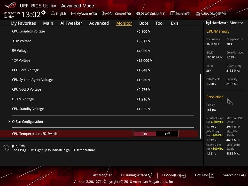 Возможности управления вентиляторами и оперативные данные по их скорости вращения сосредоточены в разделе «Monitor». Здесь же присутствует информация о ключевых напряжениях и температурах системы.