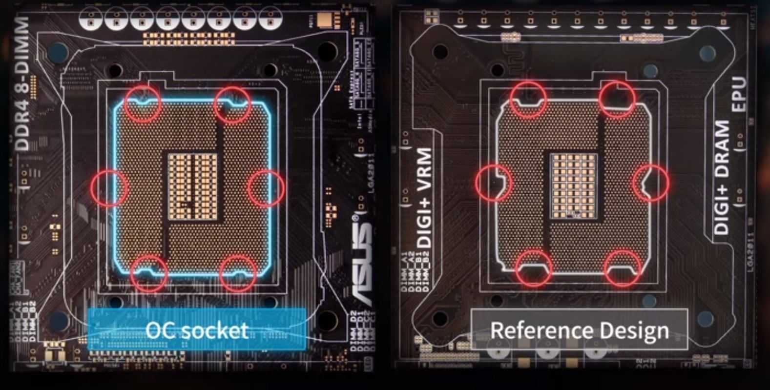 (ASUS OC Socket и сокет с референсным дизайном Intel)