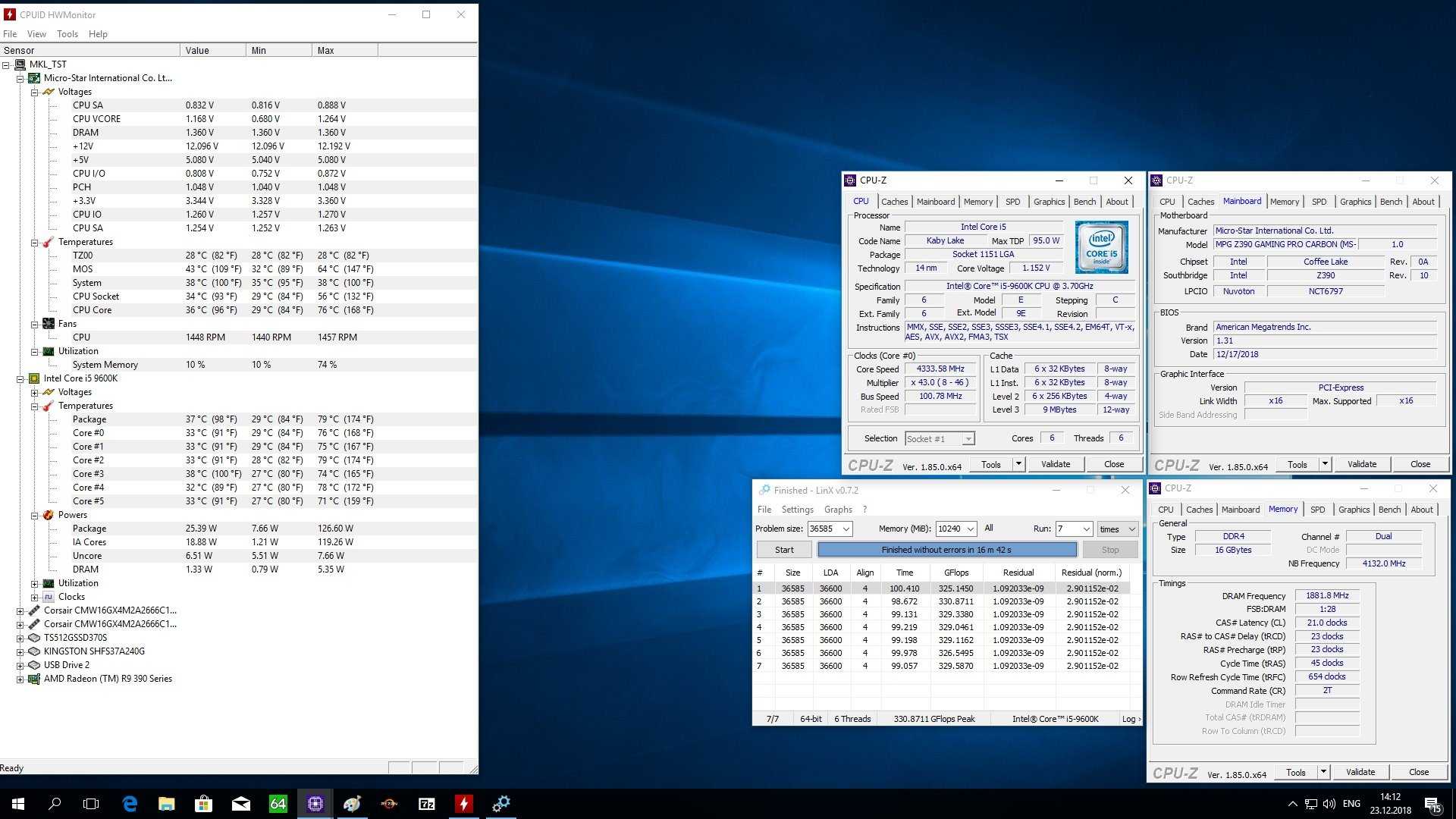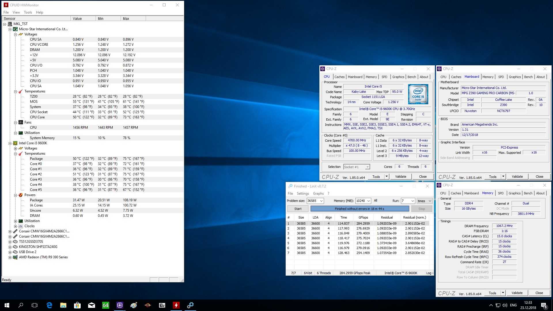 При тестировании материнской платы MSI MPG Z390 GAMING PRO CARBON использовался процессор Intel Core i5 9600K и, как показали многократные эксперименты, это оказался не самый удачный экземпляр.