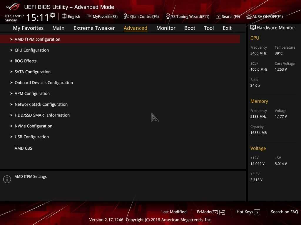 Вкладка ADVANCED включает в себя настройки всех периферийных устройств.