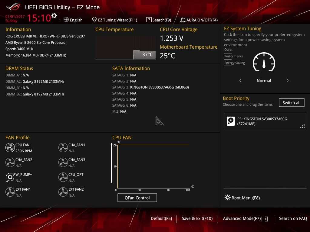 Традиционно, ASUS ROG Crosshair VII Hero (WI-FI) обладает несколькими режимами настройки системы. В частности, в окне UEFI BIOS – Ez Mode пользователи могут провести быструю настройку системы, настроив ее производительность в соответствии с поставленными задачами. Для этого в распоряжении пользователей оказываются режим XMP, а также утилиты Ez Tuning Wizard и Q-Fan Control.
