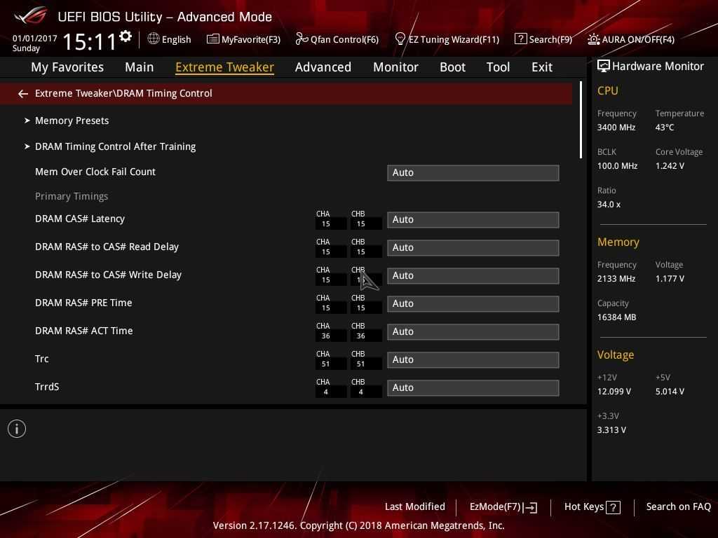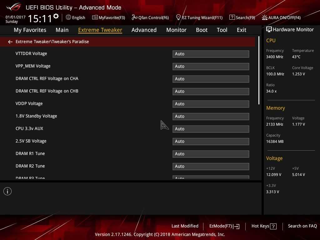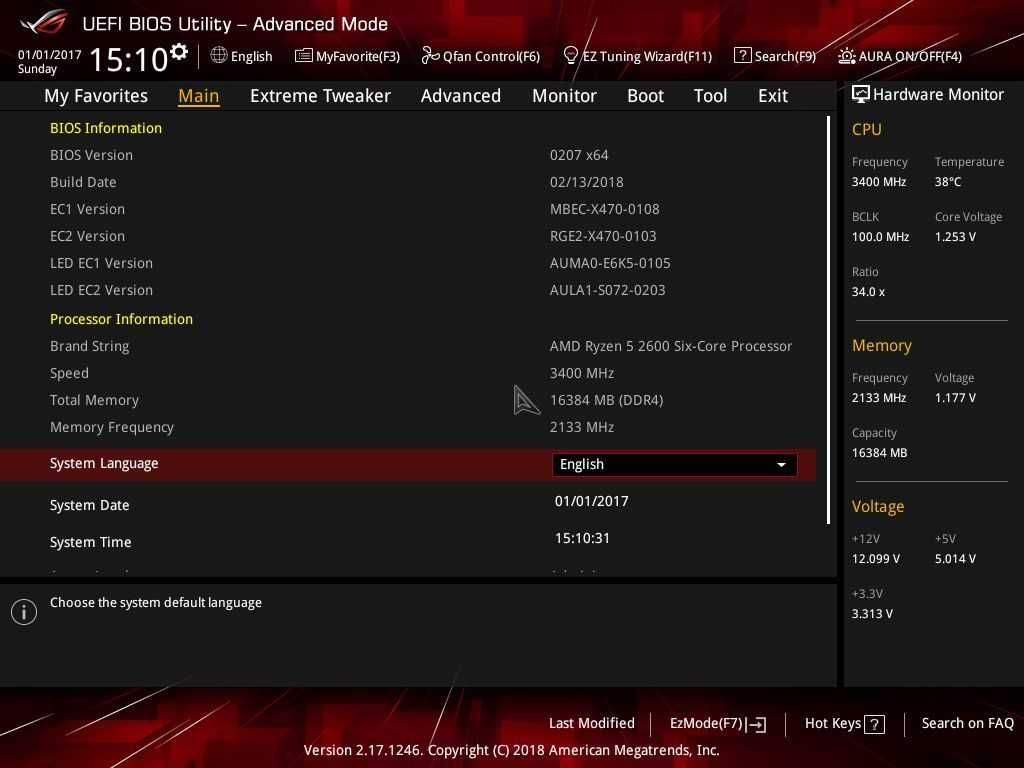 Для любого кто знаком хоть с одной материнской платой подразделения ROG – дизайн BIOS окажется таким же привычным и знакомым, как и цветовая гамма коробки. На черно-красном фоне желтым шрифтом выделены группы настроек, а остальные строки подсвечиваются белым. Вкладка Main содержит информацию о сборке, а также настройки даты и времени.