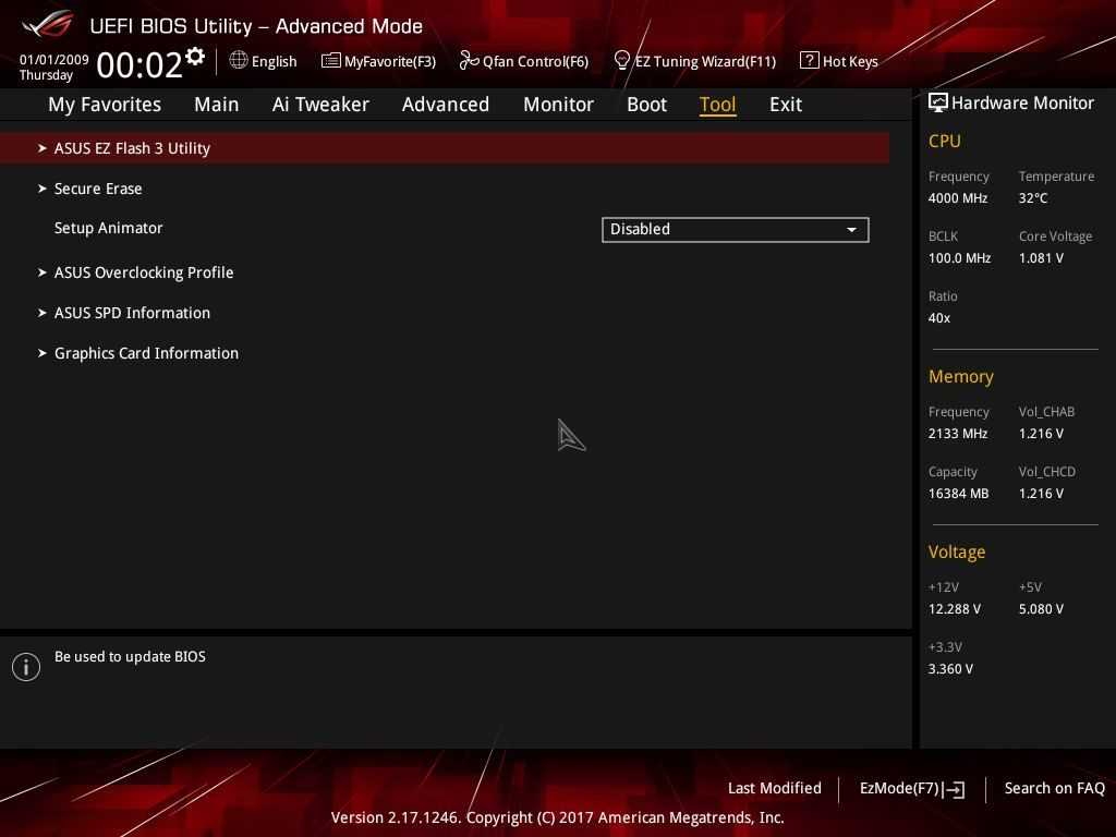 Во вкладке Tool Вы можете сохранять профили разгона и обновить прошивку БИОС.