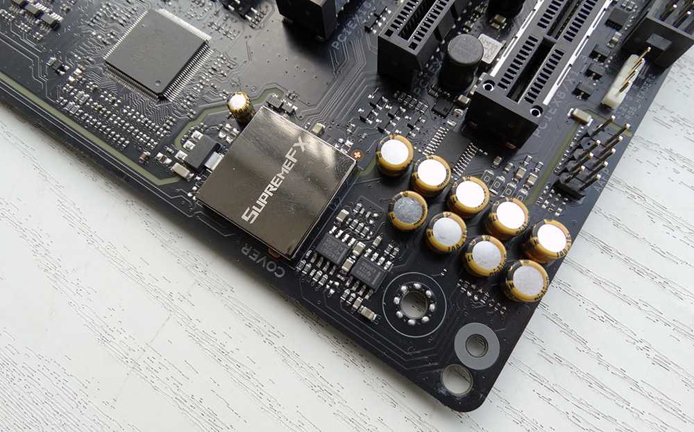Звуковая подсистема SupremeFX построена на базе аудиоконденсаторов японского производства премиум-класса и топового 7.1-канального аудиокодека Realtek S1220A, который показывает хорошее соотношение сигнал/шум на линейном аудиовыходе и входе (120 дБ и 113 дБ соответственно). Более того на плате установлена микросхема, автоматически определяющая сопротивление наушников для настройки оптимального коэффициента усиления.