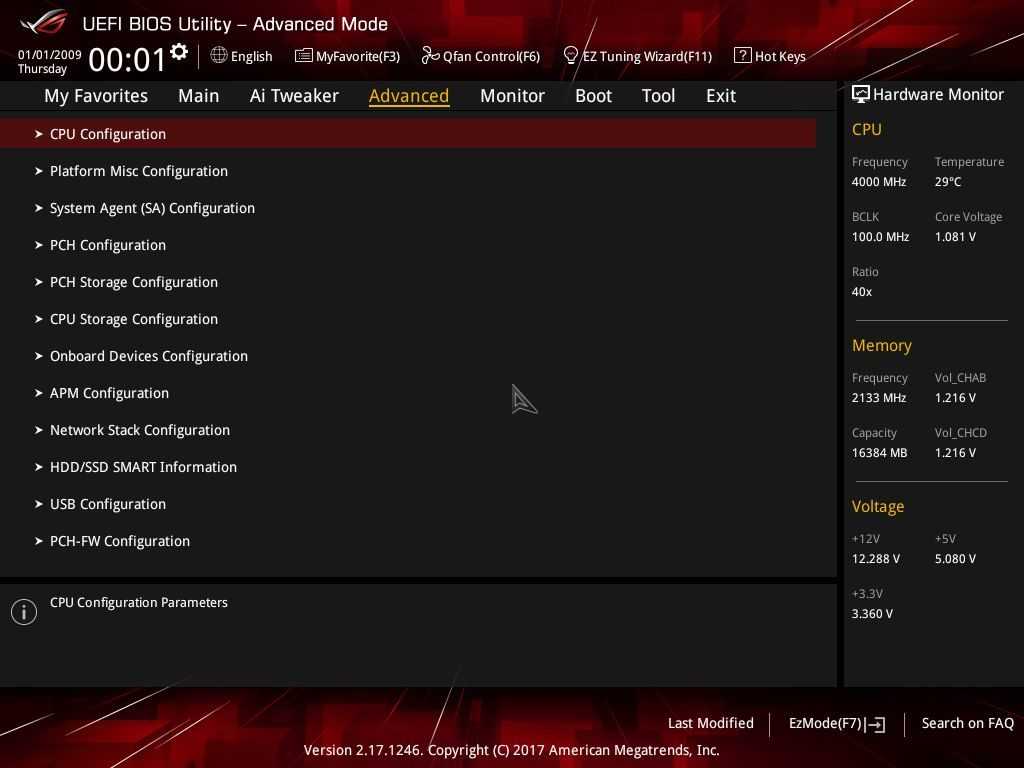 Вкладка ADVANCED позволяет настраивать основные узлы платы и сторонние контроллеры.