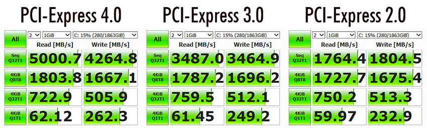 Впечатляющие результаты синтетических тестов приведены ниже. Они подтверждают, что PCI-Express 4.0 действительно предлагает более высокую скорость по сравнению с предыдущими версиями PCI-Express.