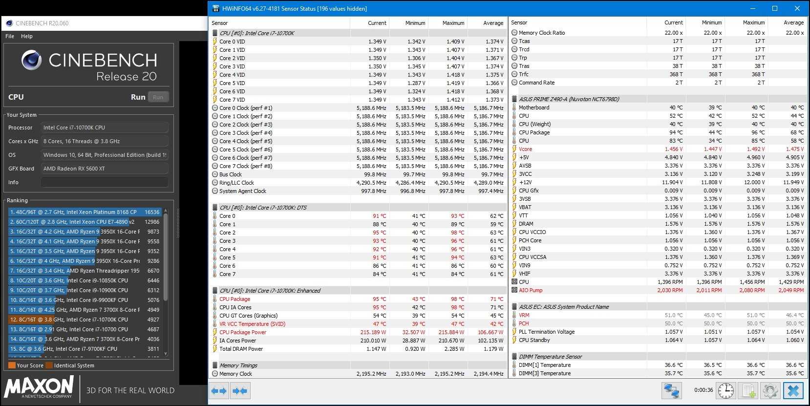 С разгоном Core i7-10700k до 5.2 ГГц его энергопотребление при рендеринге в Cinebench R20 составило 215 Вт.