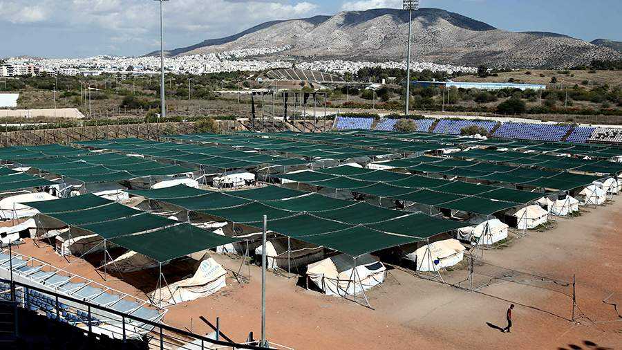 Лагерь афганских беженцев, расположенный на олимпийском комплексе в Афинах