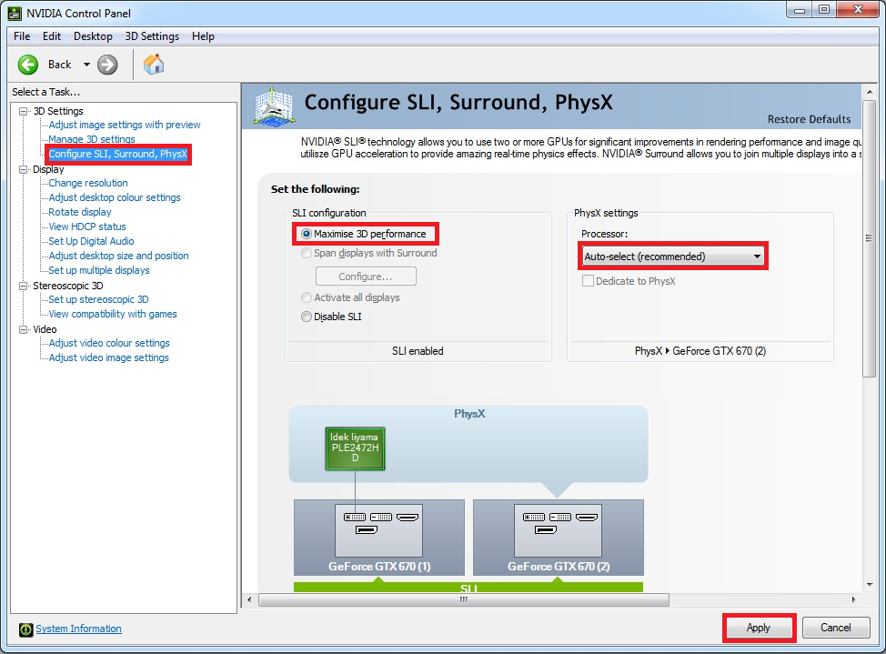 значение G-SYNC (если применимо) - Установите для Multi-Display/Mixed GPU Acceleration