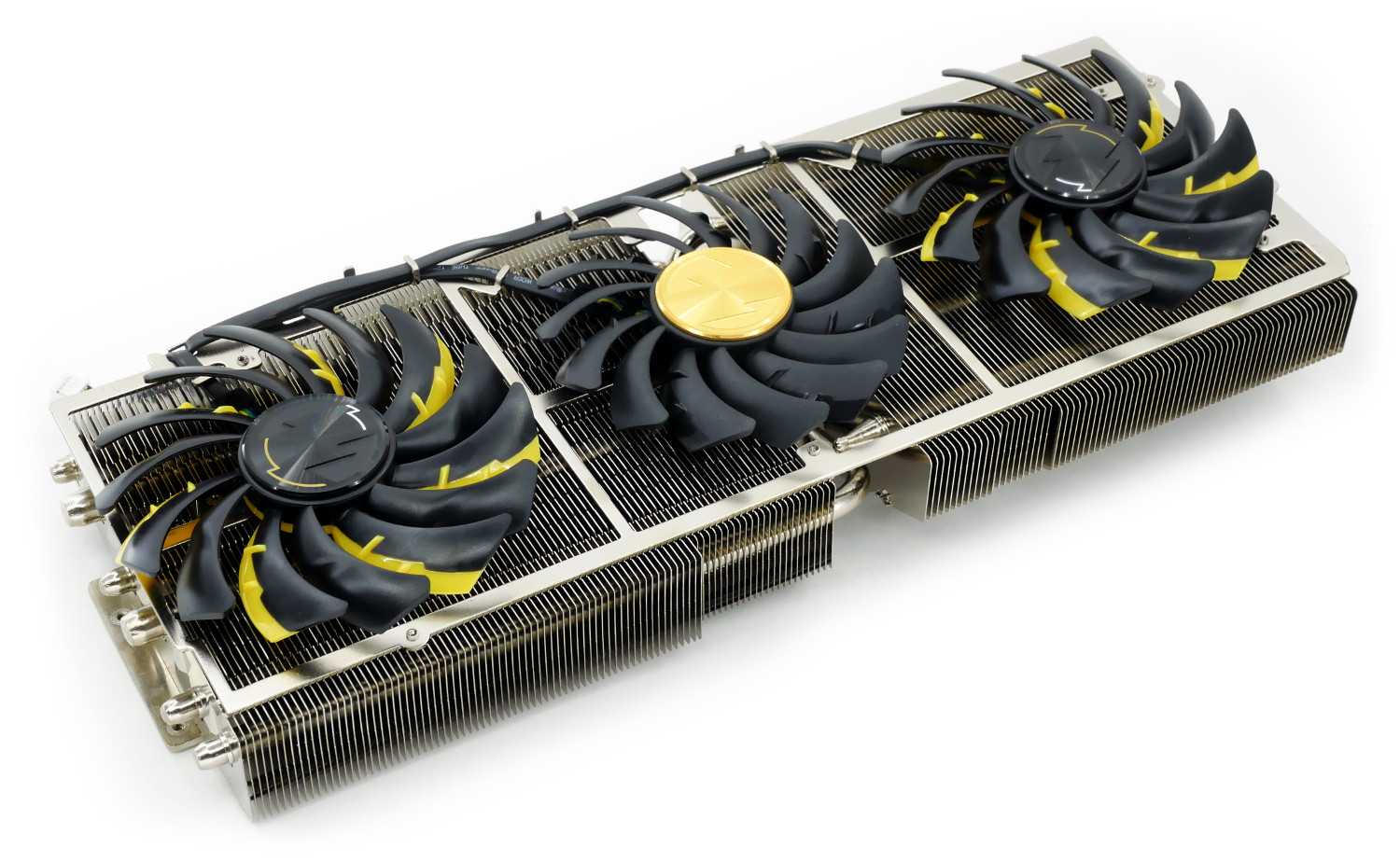 Сложно представить себе представителя серии LIGHTNING без достаточного и эффективного воздушного охлаждения, поэтому модель MSI GeForce RTX 2080 Ti Lightning Z оснащена поистине крупным кулером, который на текущий момент является одним из самых огромных в своем стане среди GeForce RTX 2080 Ti. Для равномерного прилегания и удержания его веса крепление располагается не только в области графического процессора, но и в передней части конструкции.
