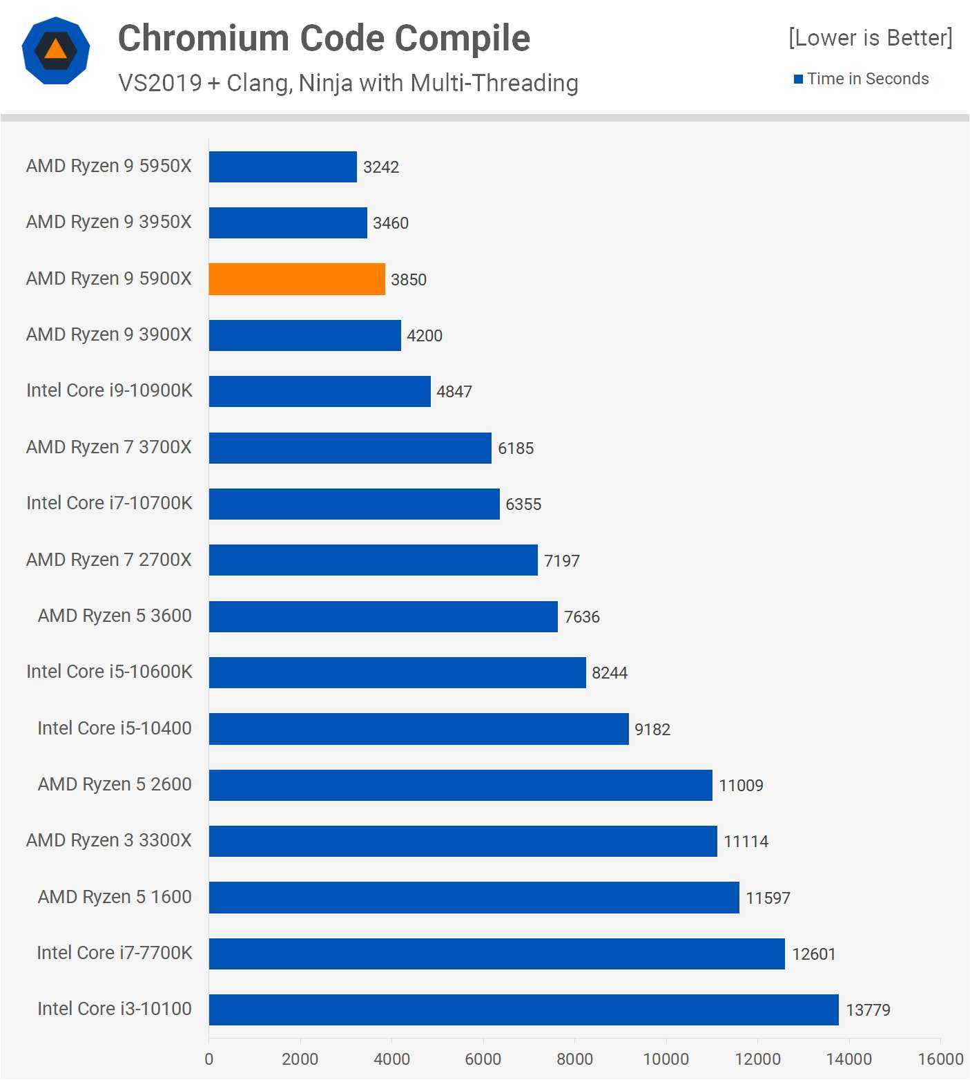 Для тех из вас, кто интересуется производительностью компиляции кода, мы увидим, что 5900X всего на 9% быстрее, чем 3900X, так что это одно из меньших улучшений, которые мы видели до сих пор, на самом деле, это может быть наименьшее преимущество.