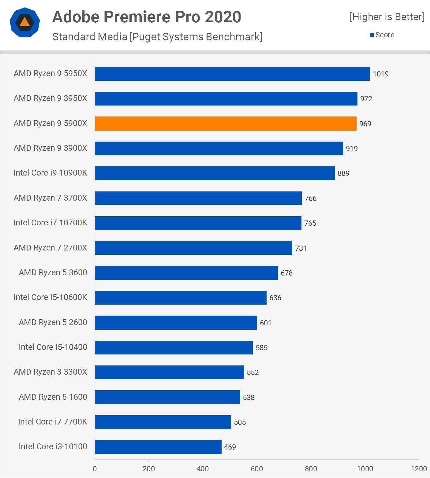 Adobe Premiere Pro 2020 снижает планку еще больше: здесь 5900X был всего на 5% быстрее, чем 3900X, тогда как он был всего на 9% быстрее, чем 10900K. Тем не менее, 9% -ное преимущество в производительности примерно за те же деньги — это не то, чем стоит чихать, конечно, учитывая, что это, похоже, наихудший сценарий.