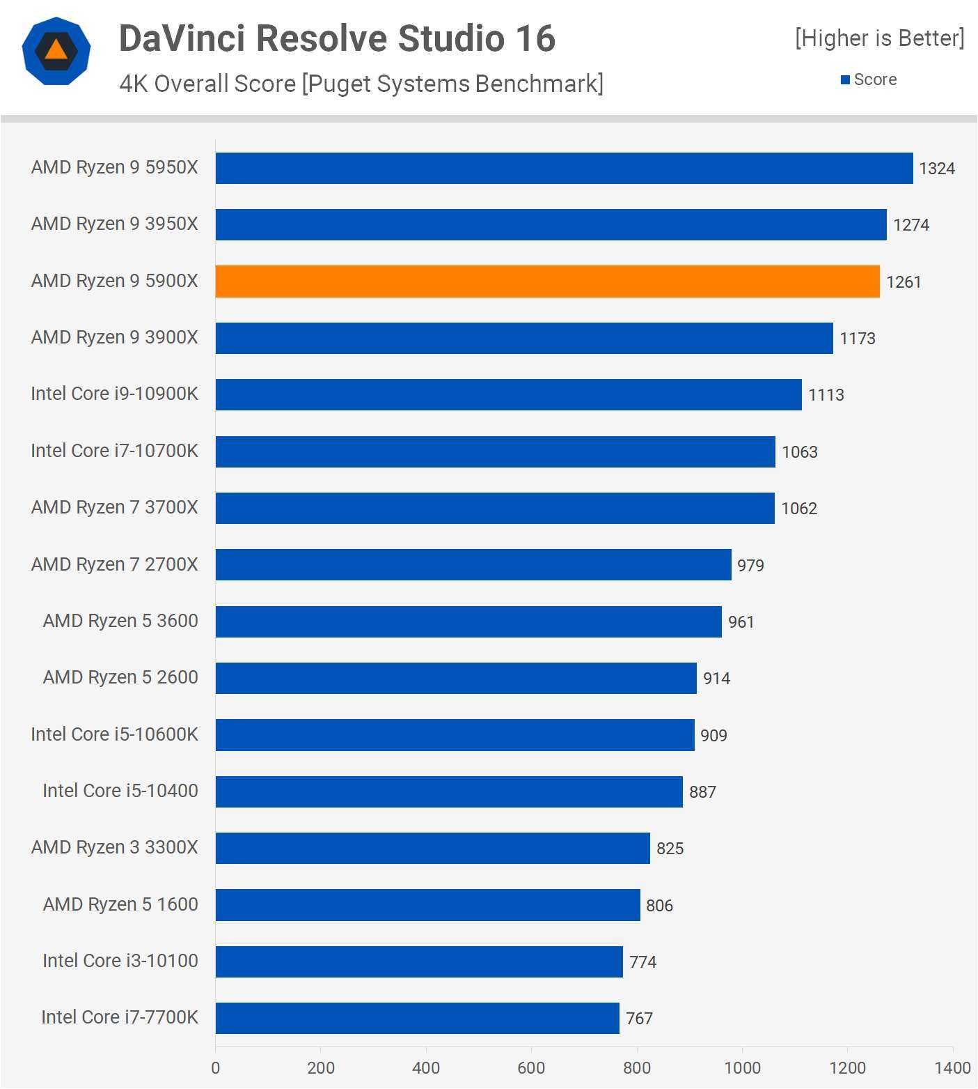 DaVinci Resolve Studio 16 с использованием теста Puget Systems Benchmark на самом деле дает самый слабый результат, который мы когда-либо видели, где 5900X был всего на 8% быстрее, чем 3900X, что примерно соответствует 3950X.