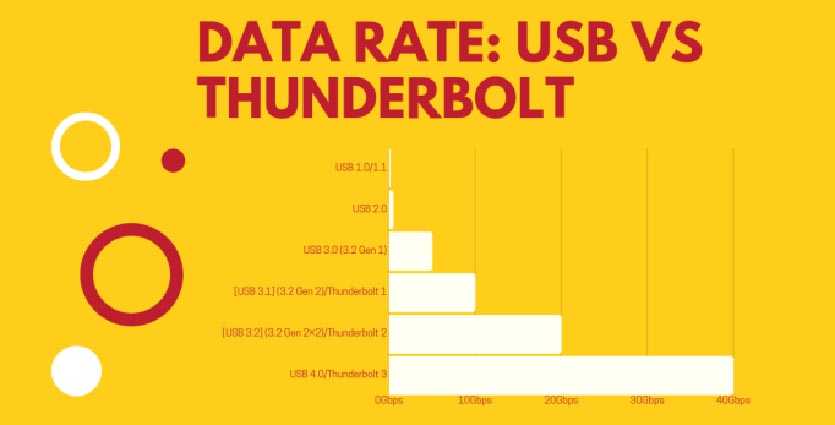 Например, USB 3.0 имеет пропускную способность до 5 Гбит/сек, USB 3.1 – 10 Гбит/сек, а Thunderbolt 3 обеспечивает пропускную способность до 40 Гбит/сек (или 5 Гбайт/сек, что в 4 раза выше, чем в USB 3.1). А этого уже хватает, чтобы передавать даже качественный видеосигнал.