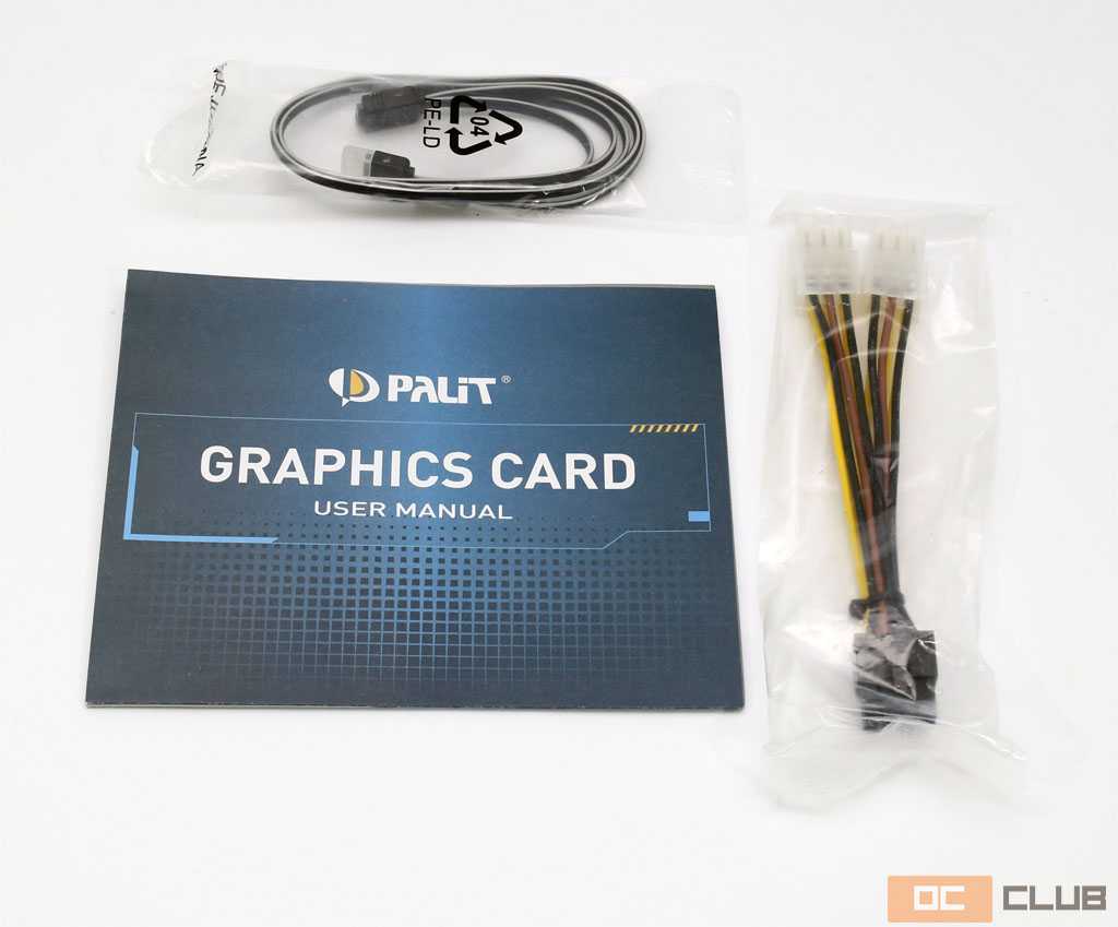 Комплект поставки куцый. Исключая «макулатуру», приданое к Palit GeForce RTX 3070 GameRock OC лишь в виде переходника с пары 6-pin PCI-E Power на один 8-pin PCI-E Power, и кабеля для синхронизации подсветки (3-pin, 5V, ARGB).