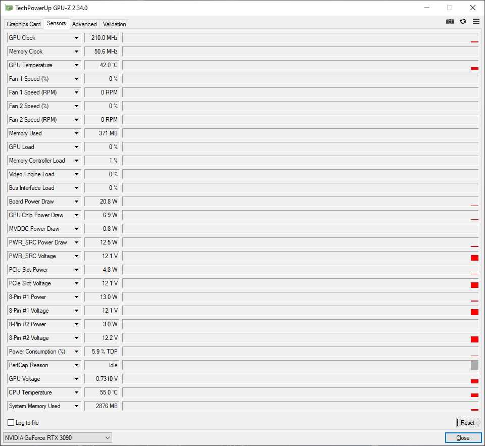 В пассивном режиме работы СО графический процессор на RTX 3090 GamingPro OC нагревается и стабилизуется на отметке в 55˚С.