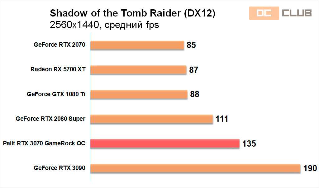 NVIDIA GeForce RTX 3070 – избыточно мощная видеокарта для «народного» разрешения 1920 х 1080, да и непосредственно чипмейкер приводил результаты тестов как минимум в 2560 х 1440. В нашем случае тестирование проводилось при разрешении QWHD (2560 х 1440) и 4К (3840 х 2160), и дополнительно с активным RayTracing в паре игр.