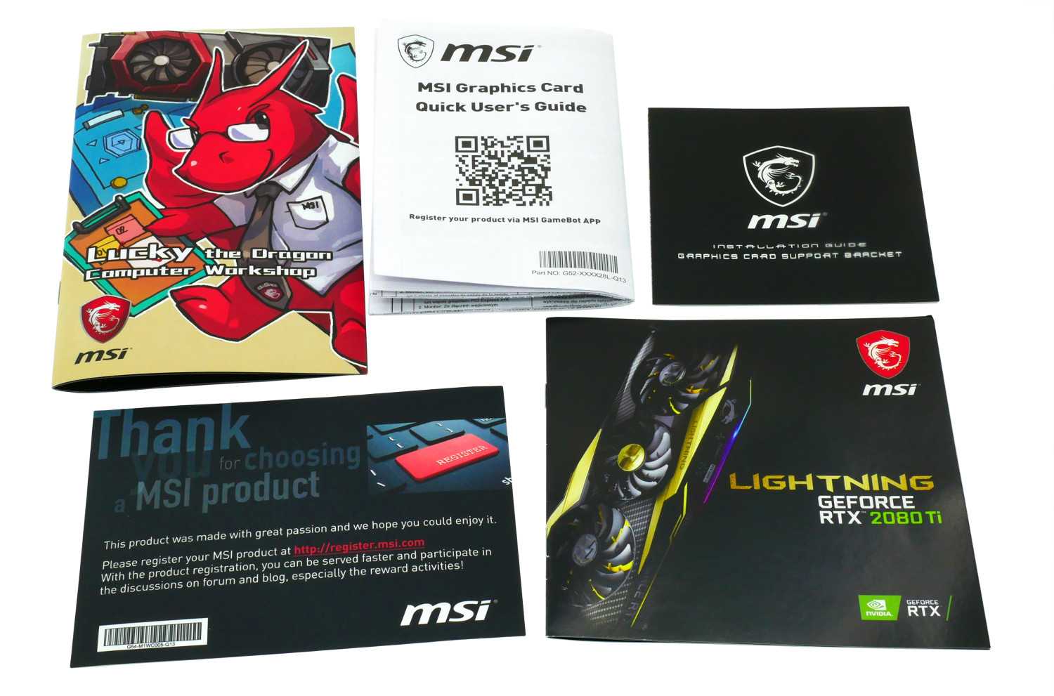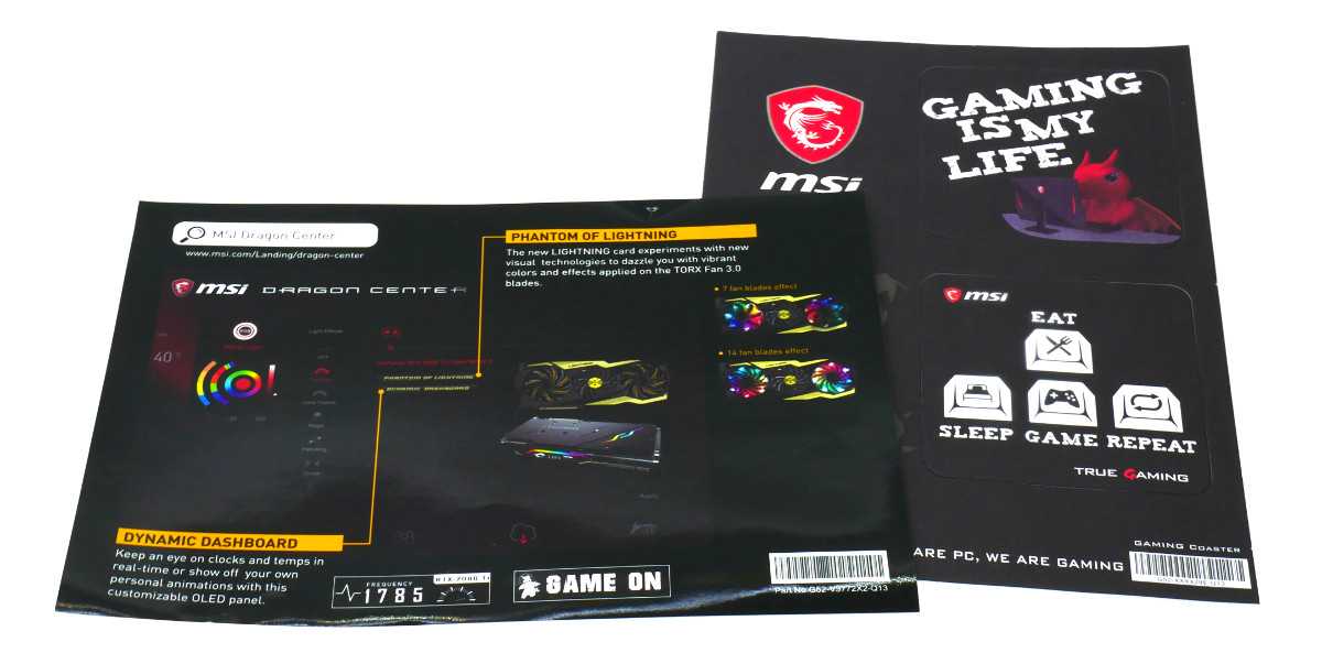 Пользователю доступен кронштейн, переходник питания 6-pin >> 8-pin, щупы мультиметра, подставки для кружки, брошюра Phantom Lightning, инструкция по установке, комикс с драконом Lucky, памятка для регистрации продукта.