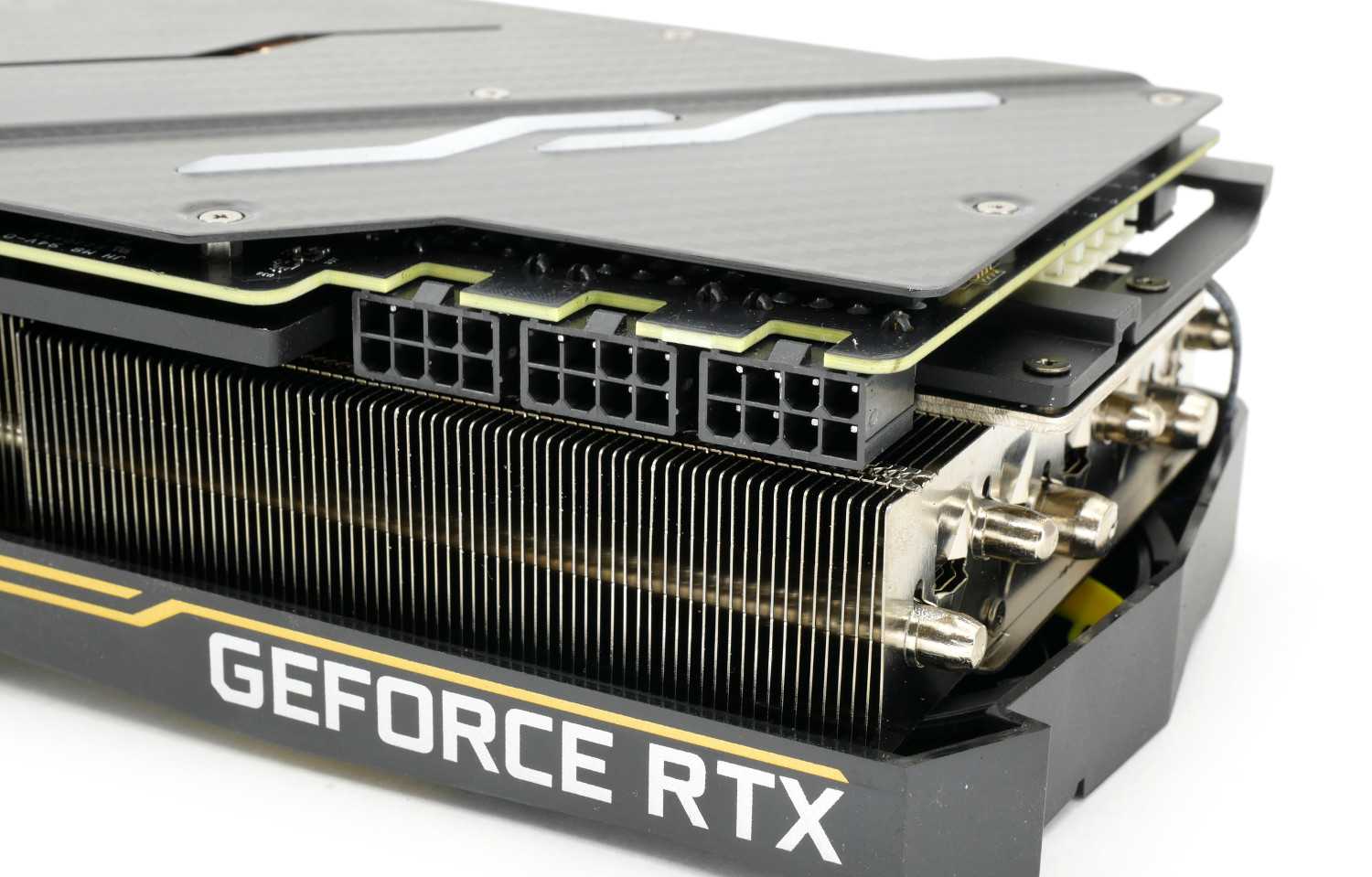 Чтобы прокормить такого монстра, разработчики оснастили видеокарту тремя восьмипиновыми разъемами, что позволяет рассчитывать на максимальное потребление до 525 Вт! Реальное потребление ниже и составляет 250-400 Вт в зависимости от нагрузки.