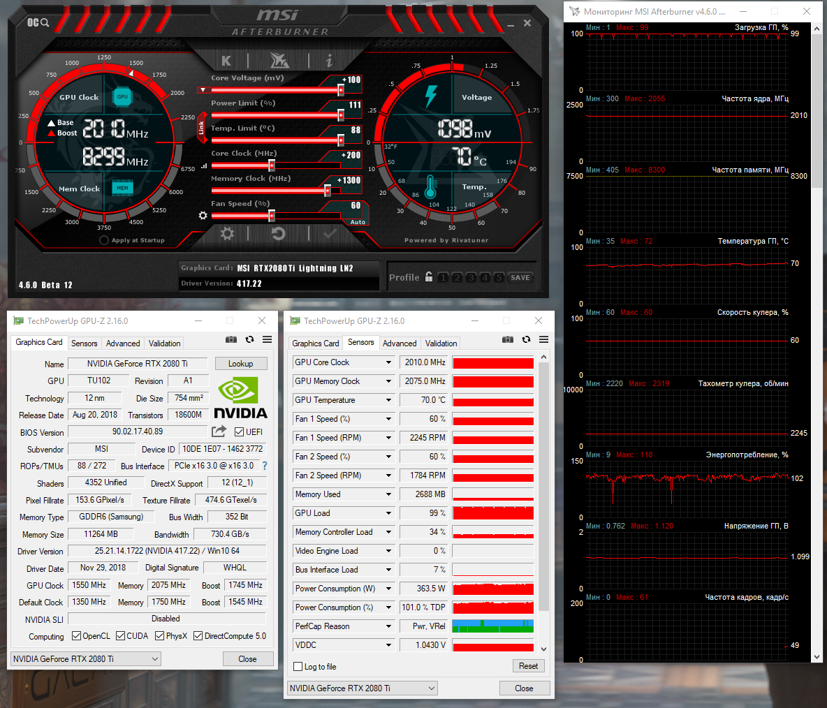 - Видеокарта: MSI GeForce RTX 2080 Ti Lightning Z;