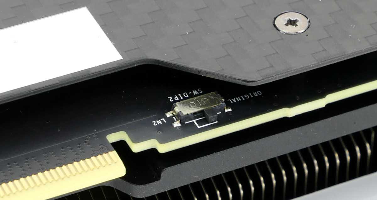 Приятной и полезной особенностью является двойной переключатель BIOS между микропрограммным обеспечением с высоким заводским разгоном и расширенным лимитом потребления для достижения своего уровня оверклокинга.