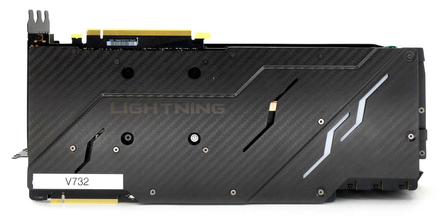 Усилительная пластина MSI GeForce RTX 2080 Ti Lightning Z полностью выполнена из карбона, позволяя стирать грань между спортивными суперкарами и современными графическими ускорителями, а детальная проработка деталей и внимание к мелочам приятно сказываются на знакомстве с новинкой.