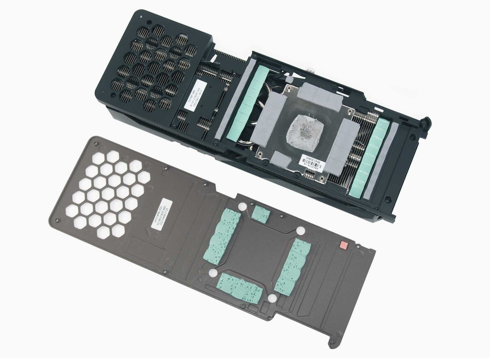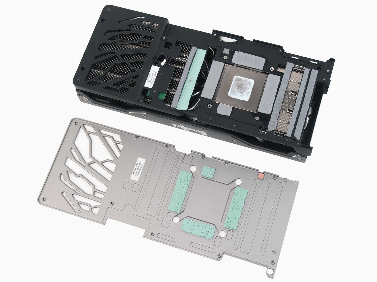 Разбор обеих видеокарт сопряжен сложностями в том, что для монтажа радиатора СО и бэкплейта производитель использует большое количество винтов различного размера. Однако такой подход играет только на пользу GeForce RTX 3080 Ti GameRock OC и GeForce RTX 3080 Ti GamingPro, поскольку обеспечивается более качественный прижим компонентов.