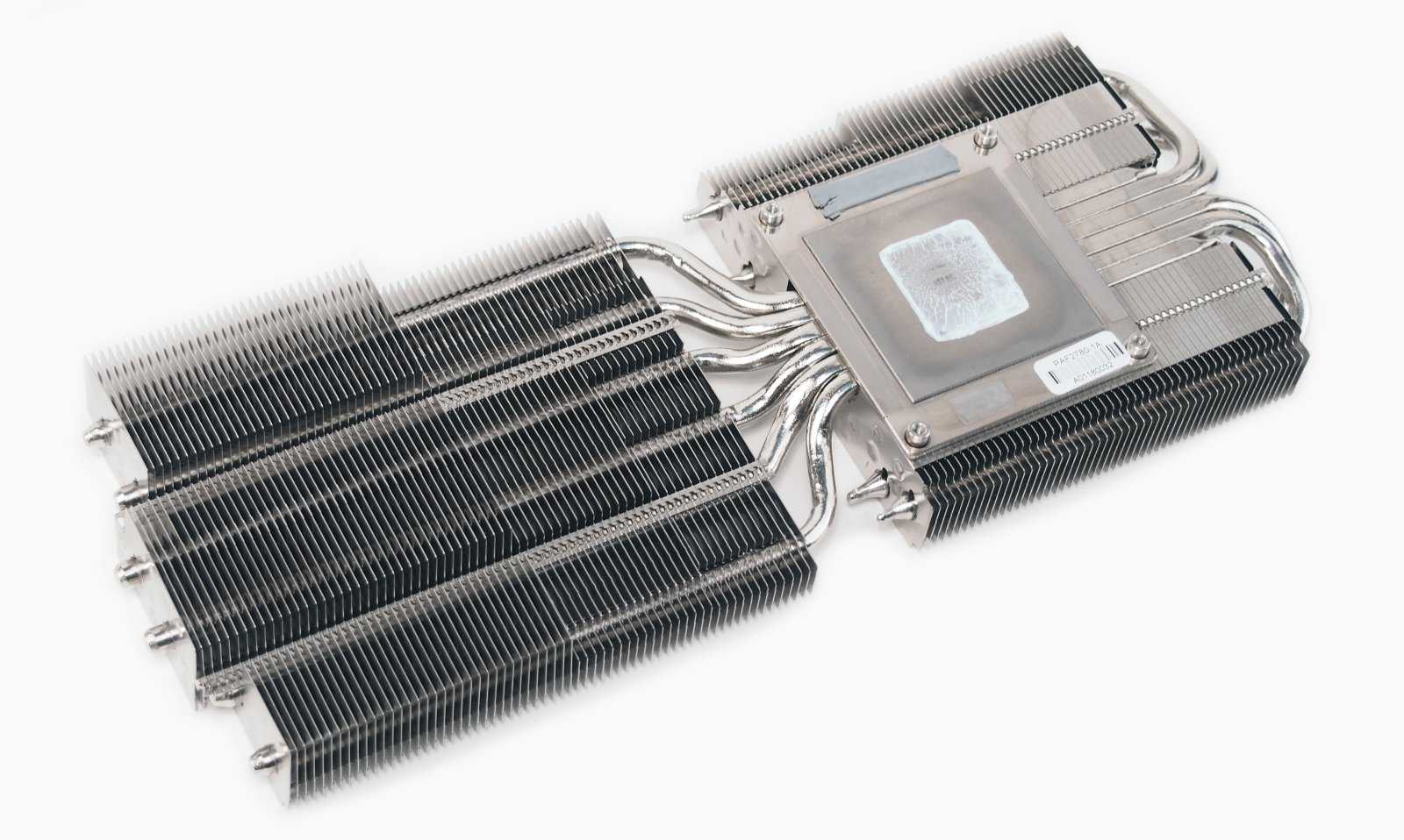 Из-за такого нагромождения слоев получается, что видеокарта занимает в стойке ширину не 1, а 2 слота. Толщина такой детали, в среднем, около 5 см.