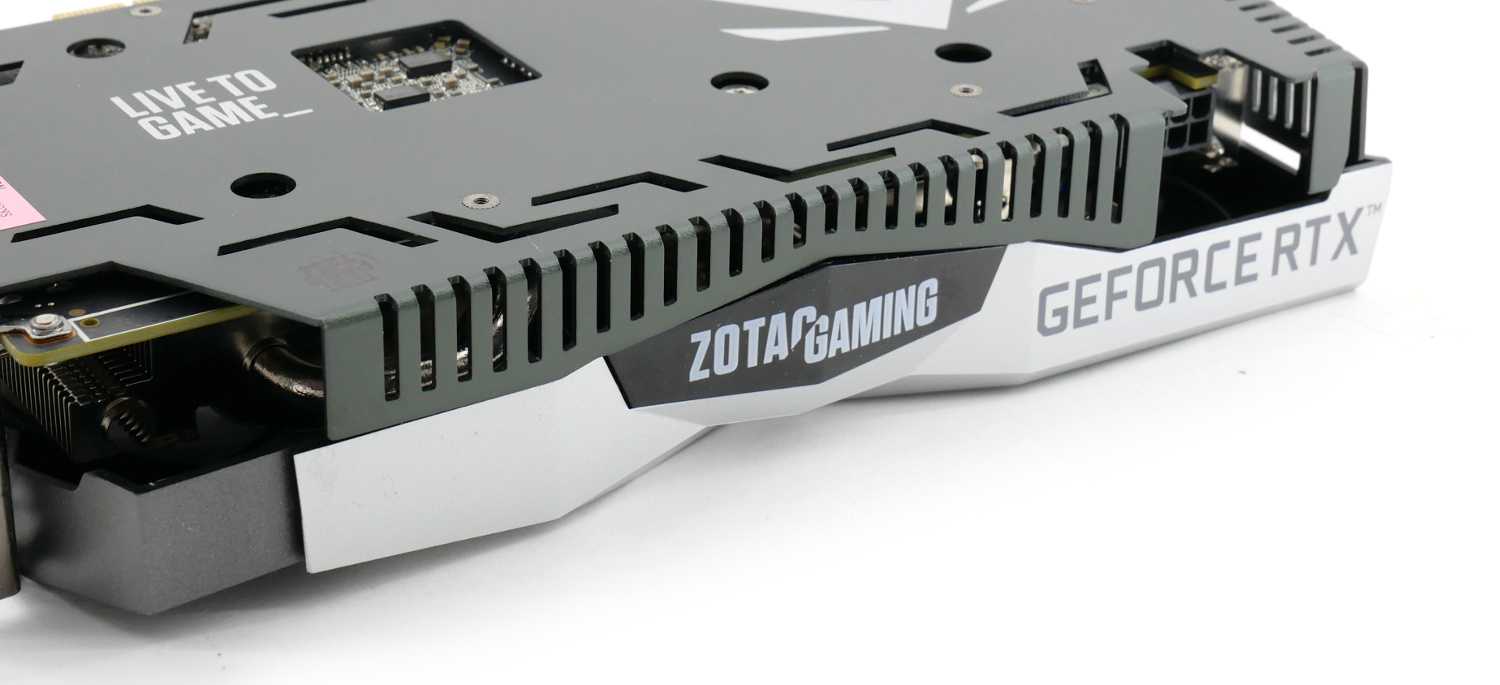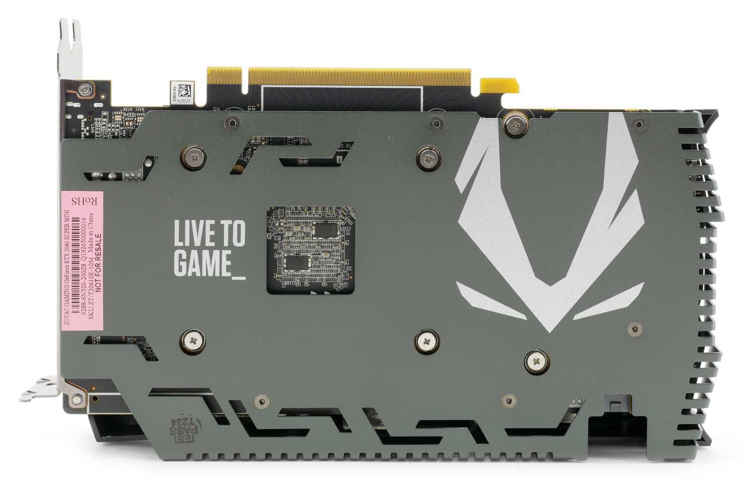 Агрессивный внешний облик подчеркивает массивный бэкплейт с характерными зарубами и геометрическими прорезями для создания оптимальной конвекции теплового воздуха. Фирменный лозунг производителя и логотип украшают спину видеокарты.
