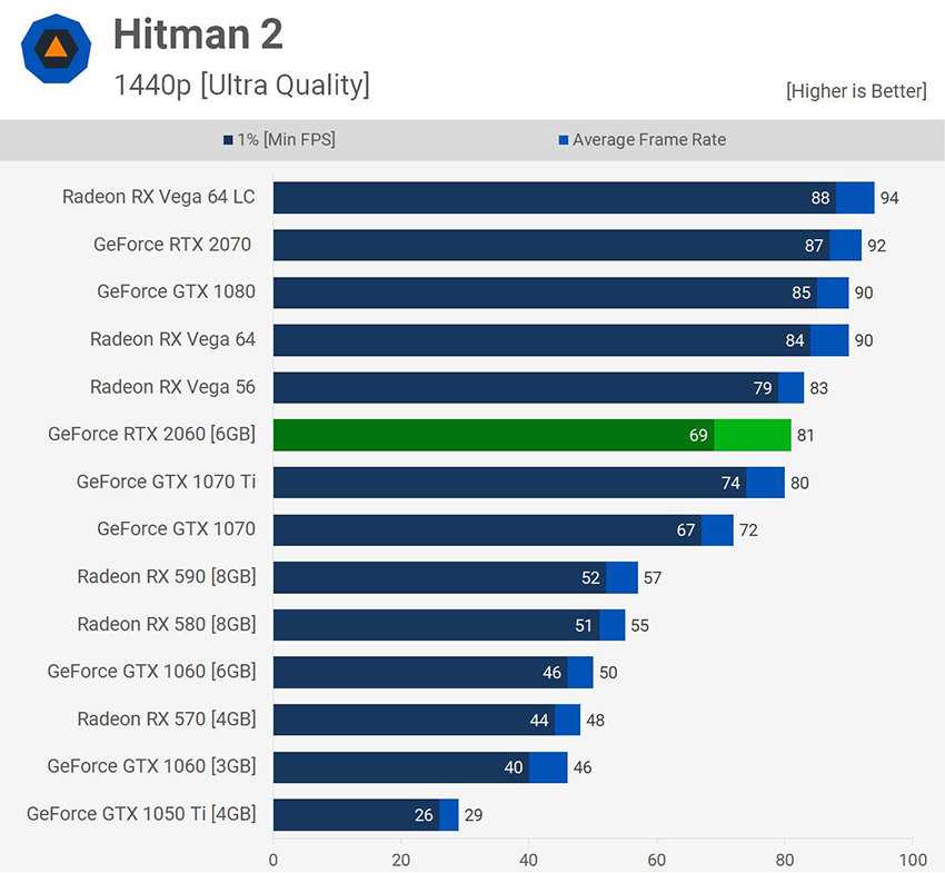 Производительность в Hitman 2, скорей всего, будет улучшена. В нескольких играх производительность RTX 2060 в части времени вывода одного кадра падала ниже нормального для этой карты уровня, и мы не думаем, что это связано с объемом видеопамяти.