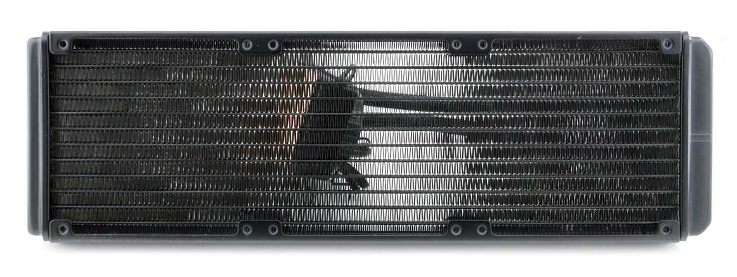 В первую очередь, этого удалось добиться более массивным рабочим телом радиатора 360 мм. Общие габариты 394 х 120 x 27 мм.Толщина рабочего тела составляет всего 17 мм.