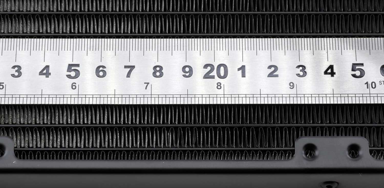 В основе рабочего тела лежат четырнадцать плоских каналов, между ними впаяна гофрированная лента. Плотность расположения ребер классическая и равна 19-20 FPI.