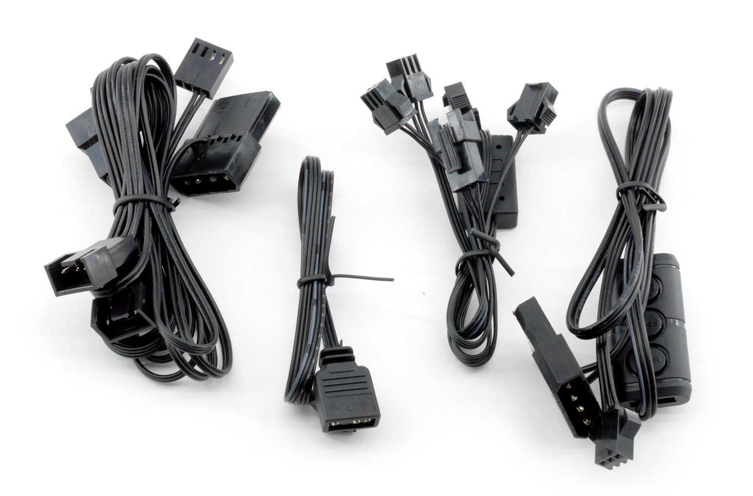 Из корпуса помпы выходят два проводка: классический 3-pin для управления и мониторинга, а также нестандартный штекер подсветки RGB 3-pin, для которого предусмотрен отдельный переходник.