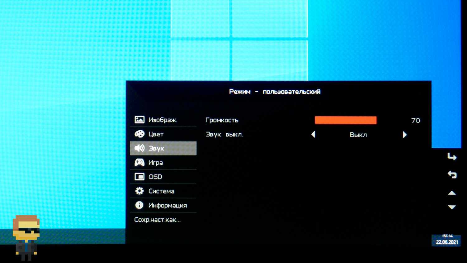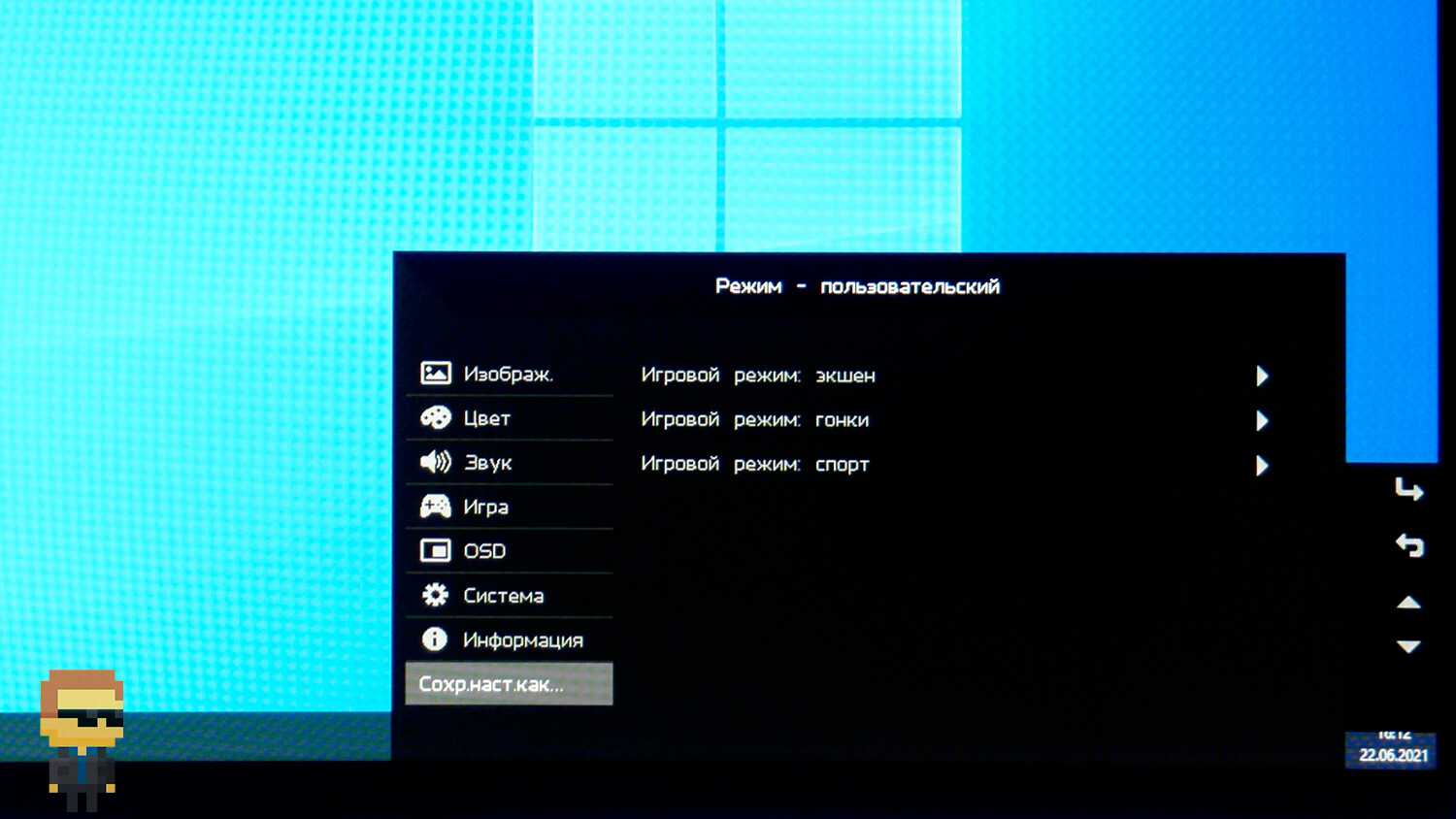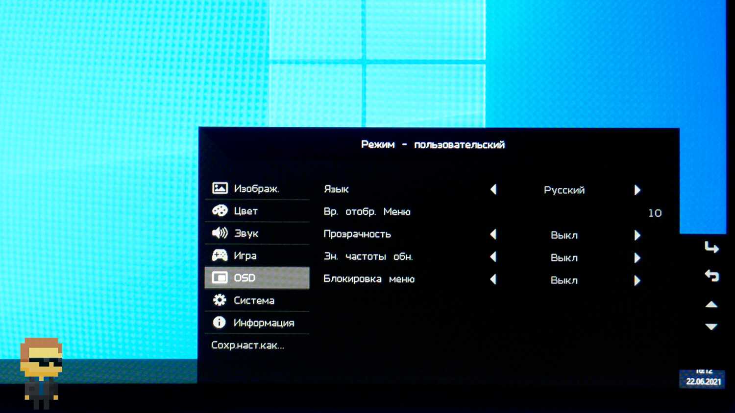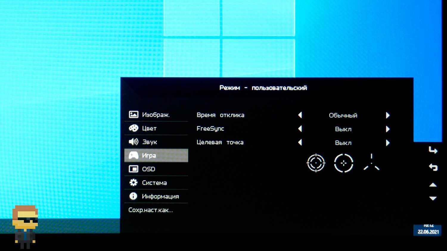 Меню монитора