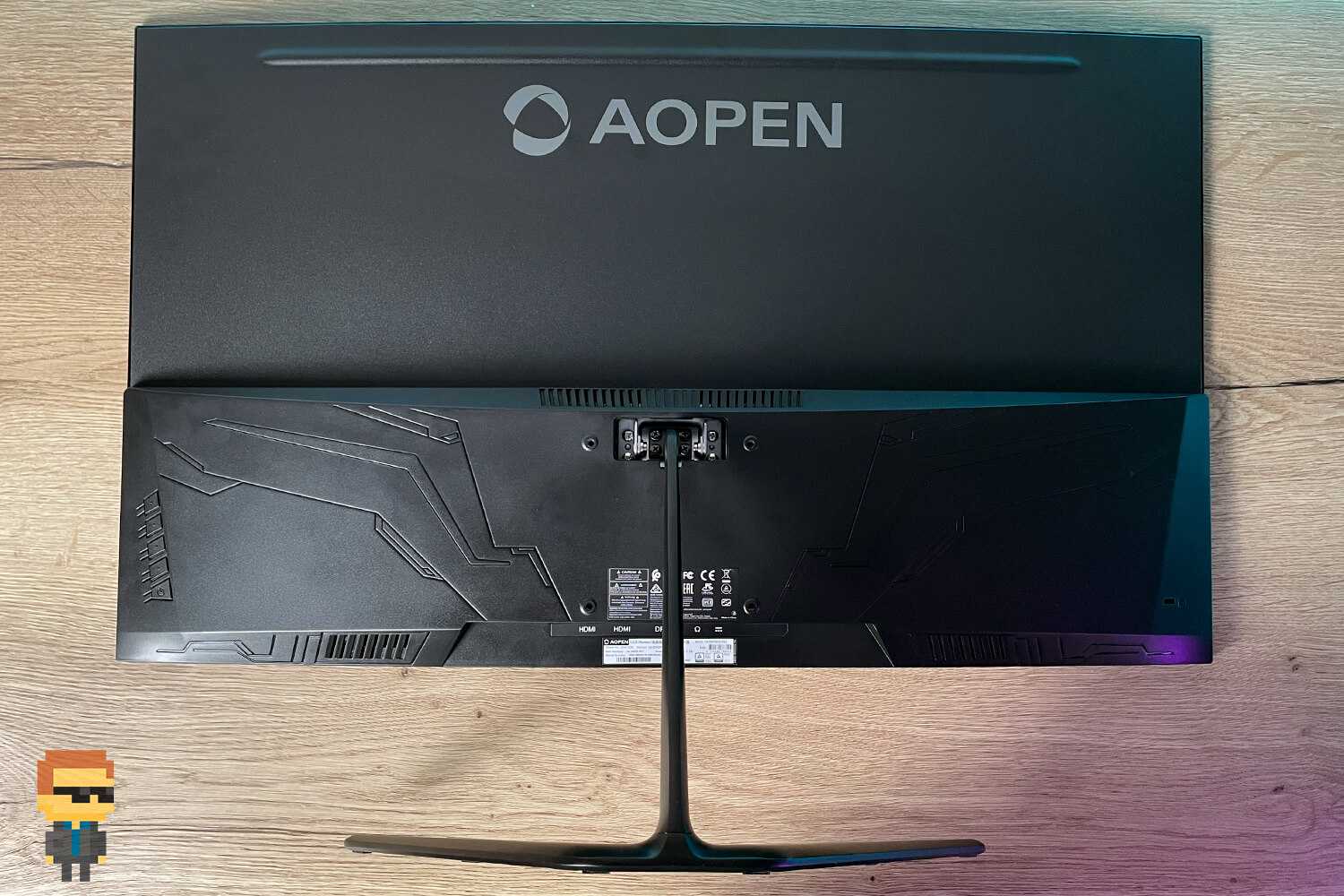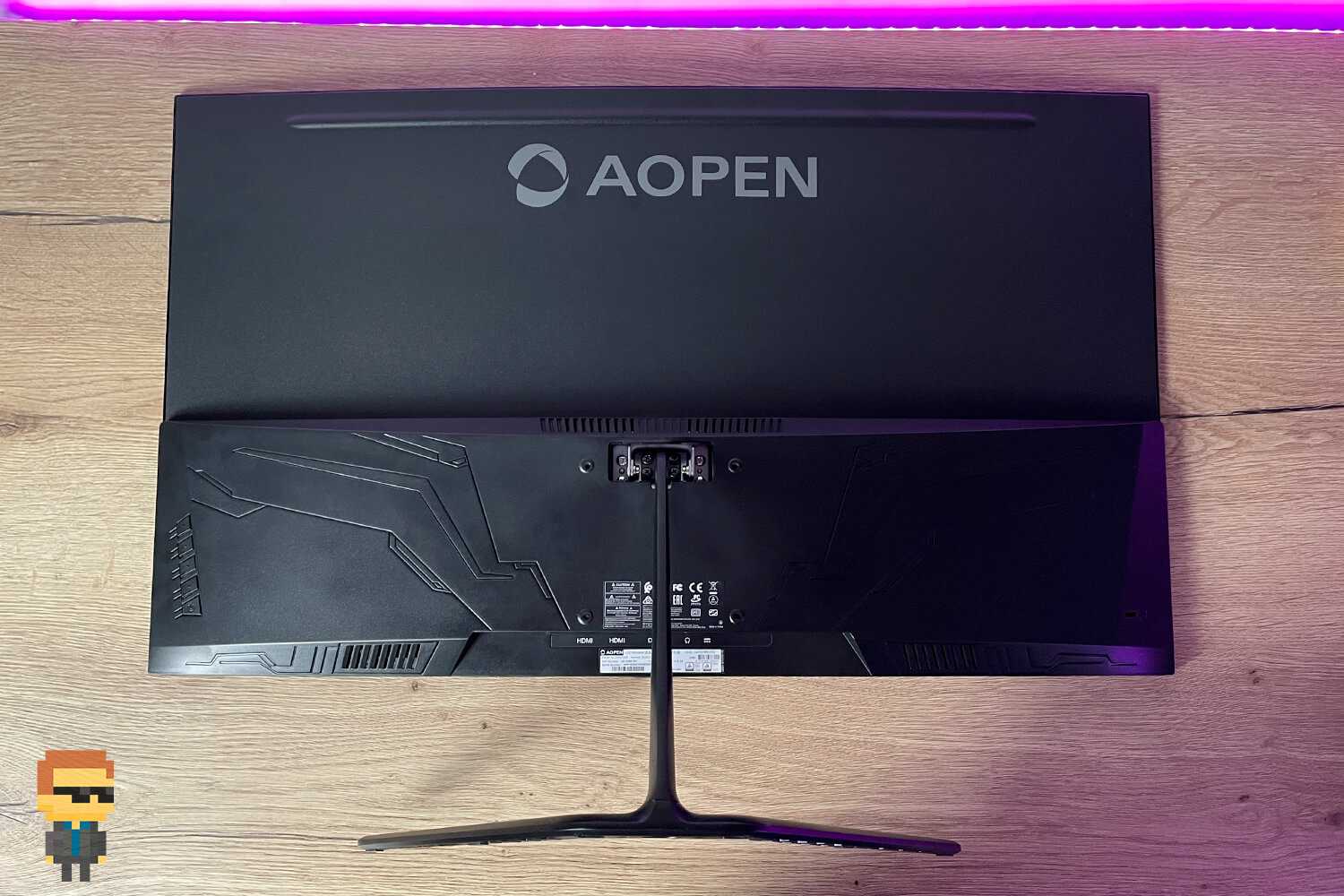 В нижнем углублении задней панели находятся разъемы. Два HDMI, DP и аудиоджек для подключения проводных наушников. И в данном случае конструкторы AOPEN учли, что продвинутые геймеры нередко предпочитают такие «уши» беспроводным. Кроме того, там же находится круглый разъем для блока питания.
