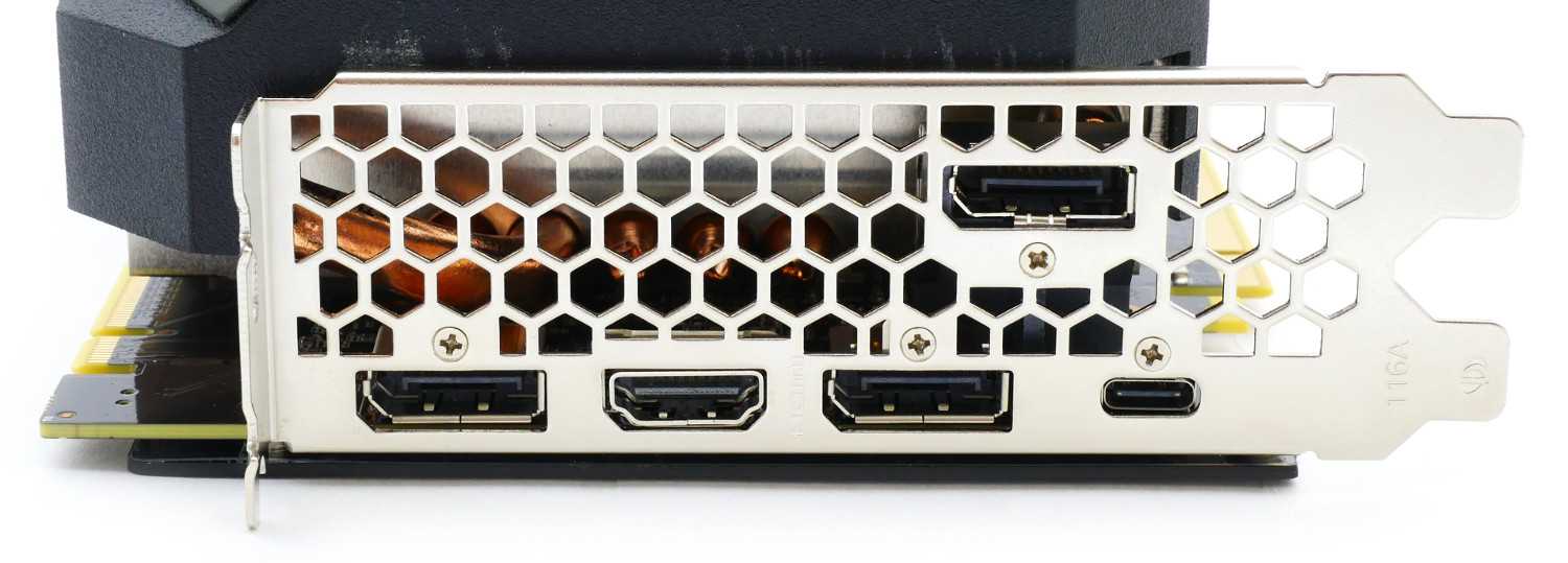 На задней интерфейсной панели мы можем наблюдать пять видеопортов – один HDMI 2.0b, три DisplayPort 1.4 и USB Type-C для мультизадач.