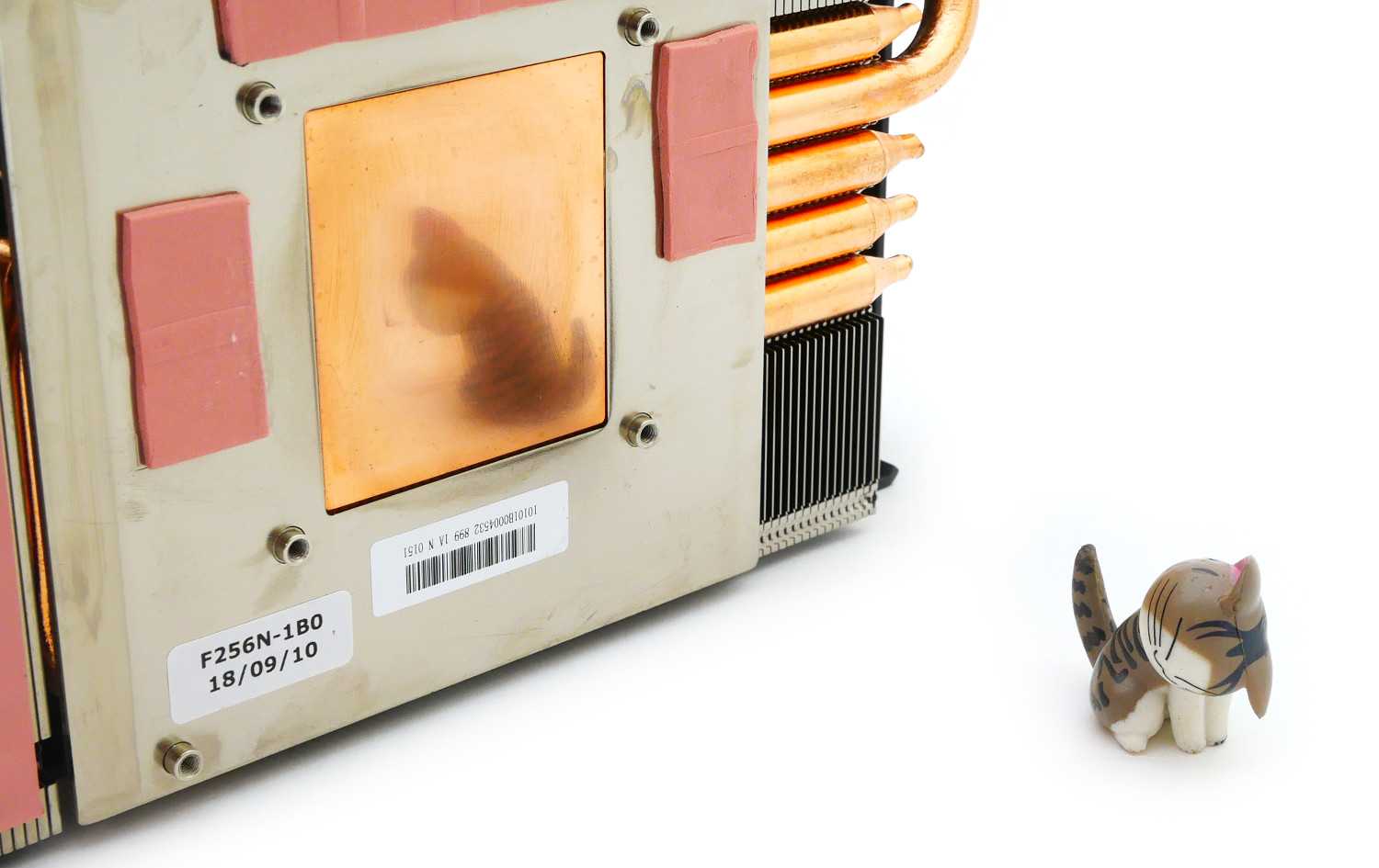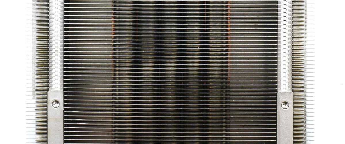 Основной охладитель представляет двухсекционный радиатор, набранный 70 и 78 алюминиевыми никелированными ребрами соответственно, пронизанные пятью тепловыми трубками диаметром 8 мм каждая.
