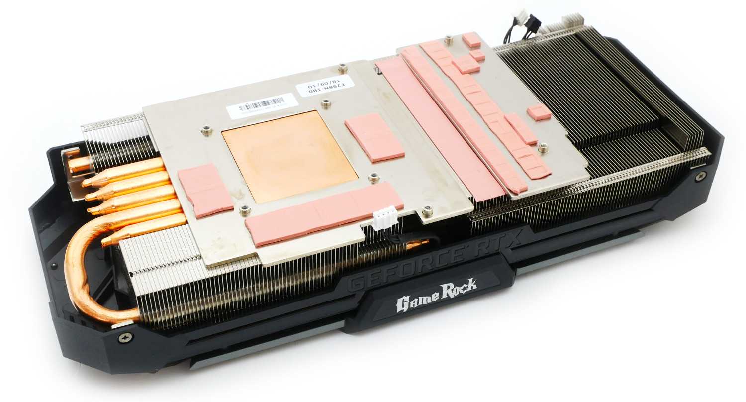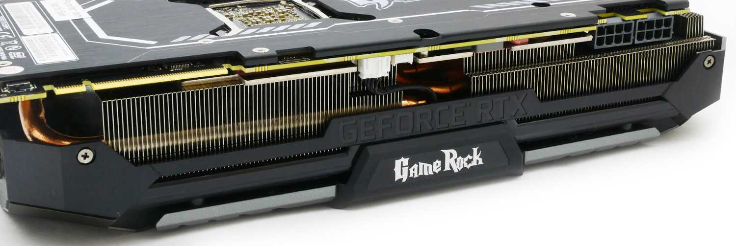 Высота ребер достигает 30 мм, что равняется половине от общего значения Palit GeForce RTX 2080 GameRock Premium: ее показатель составляет 59 мм или три слота расширения.