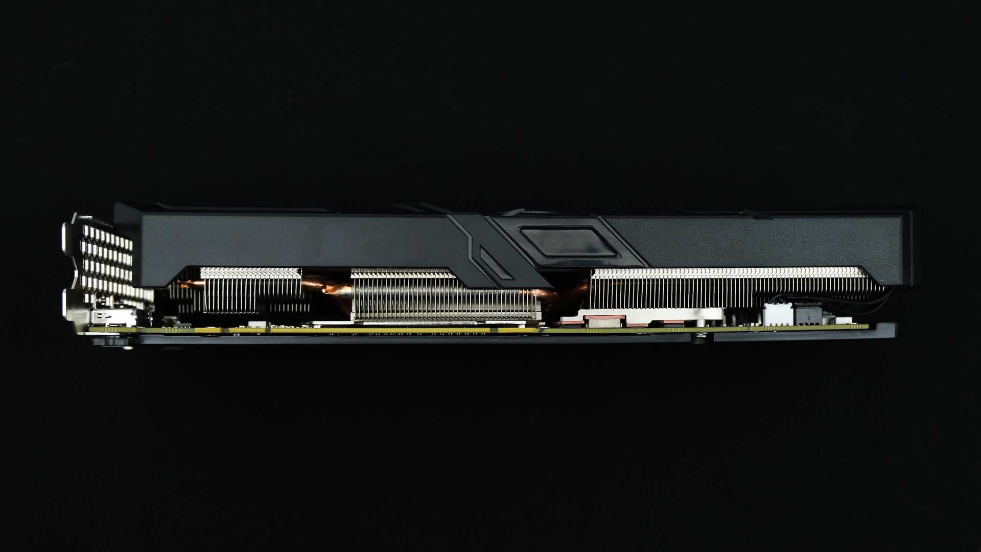 Заднюю сторону украшает металлический бэкплейт с усиливающей крестовиной в области GPU.